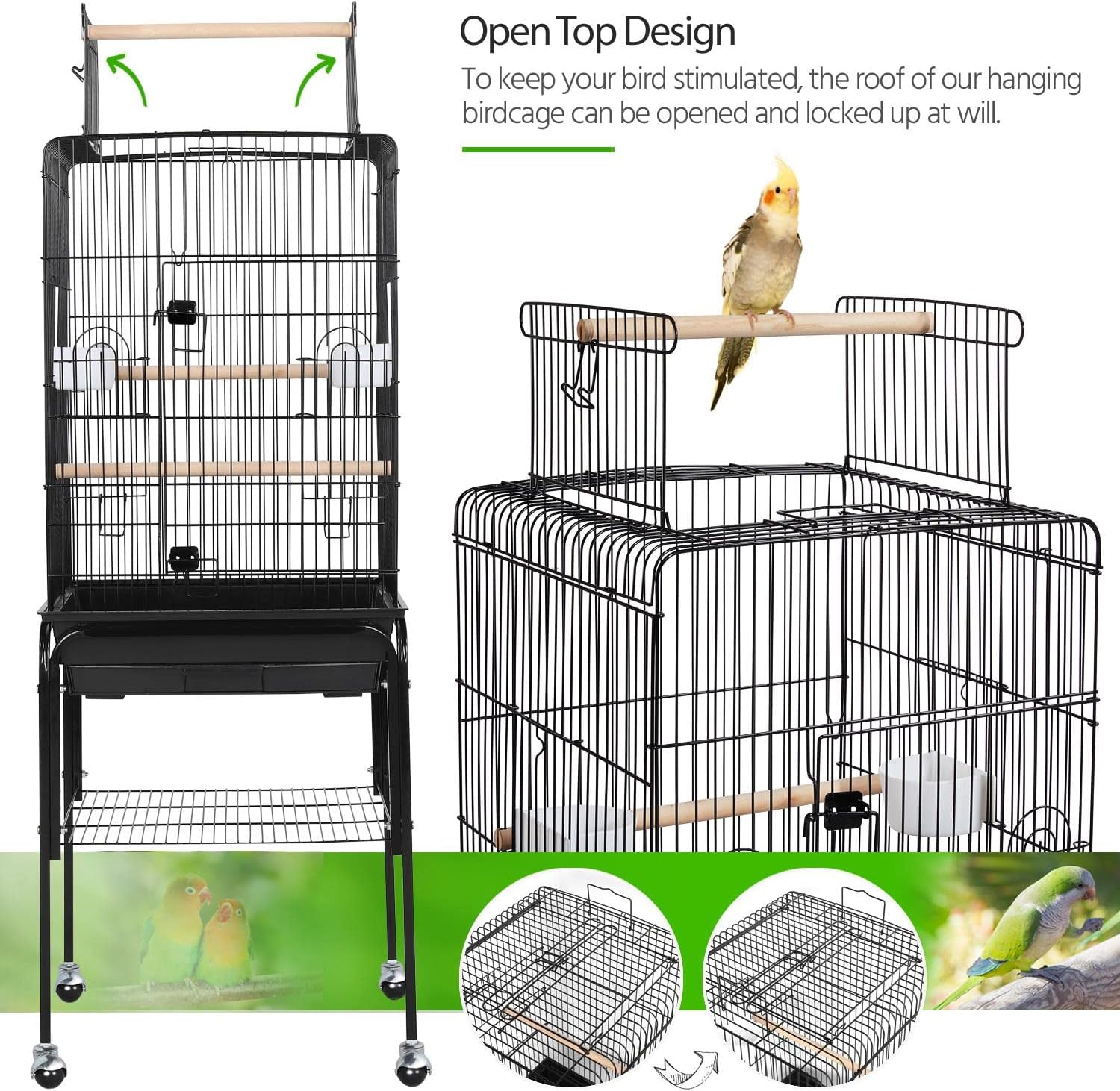 Yaheetech Open Top Rolling Parrot Bird Cage for Cockatiel Sun Parakeet Green Cheek Conure Mid-Sized Parrot Cage with Detachable Stand