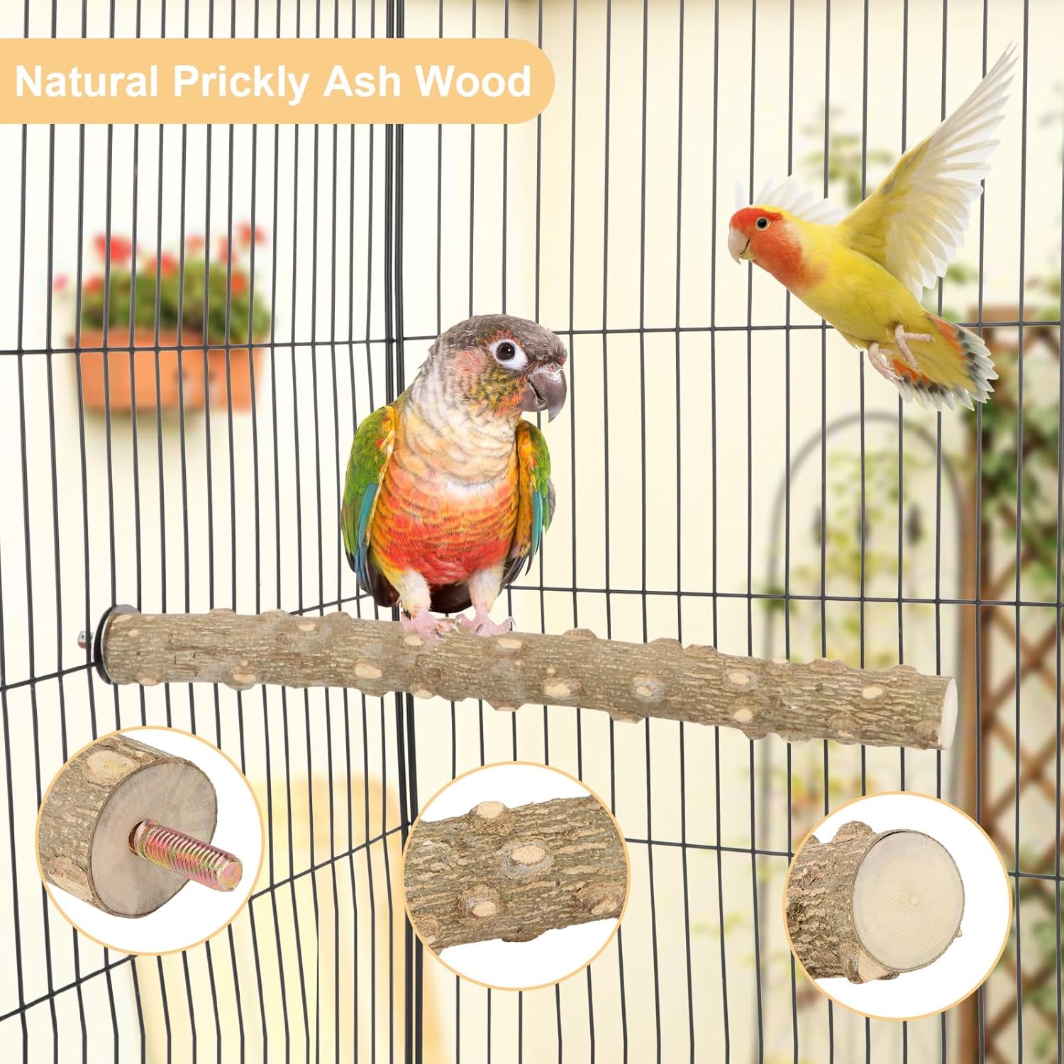 - 100% Natural Prickly Ash Wood – Safe Chewing & Zero Chemicals: Chemical-free bird perch made from dense hardwood, splinter-proof for parakeets, cockatiels, and parrots. No dyes or coatings – safer than plastic or rope perches.