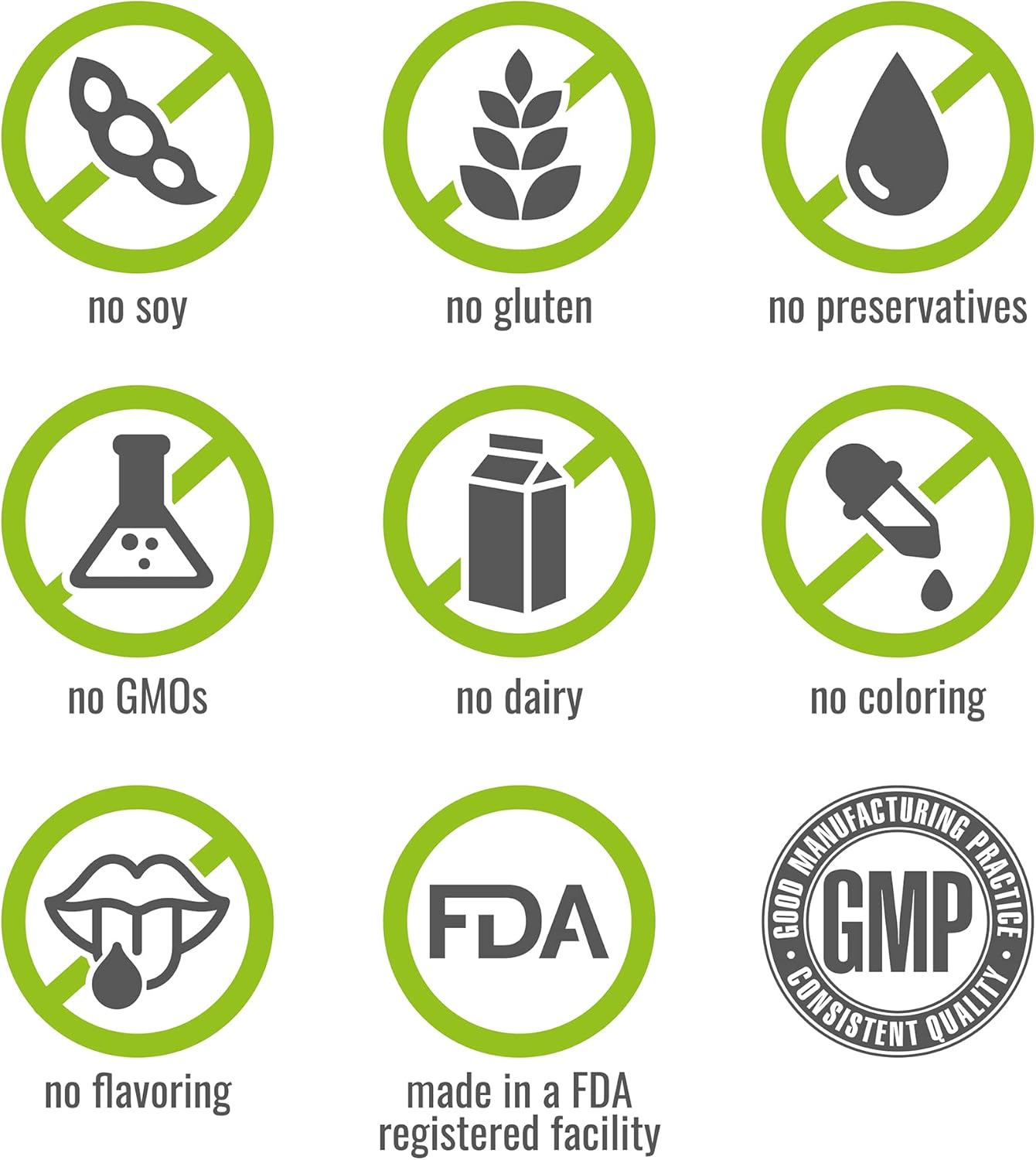 - PREMIUM QUALITY: Unlike cheaper brands this product is made with premium ingredients that are Non-GMO, Gluten Free, Soy Free, and contain No Coloring, Flavoring, or Preservatives.
