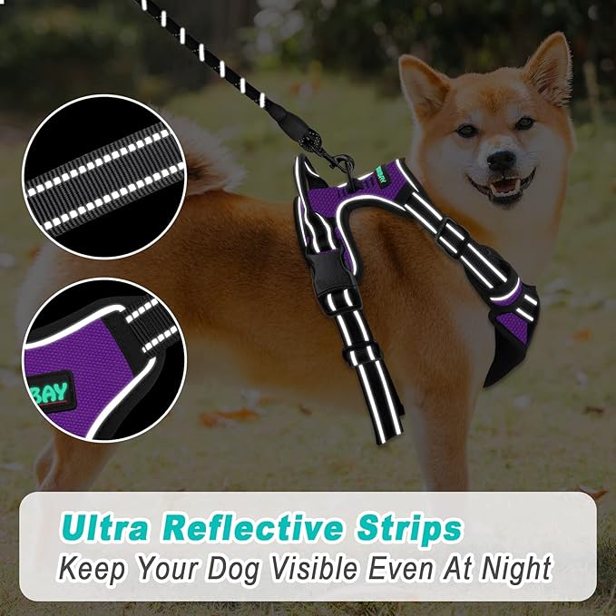 BARKBAY No Pull Dog Harness Large Step in Reflective Dog Harness with Front Clip and Easy Control Handle for Walking Training Running(Purple,M)