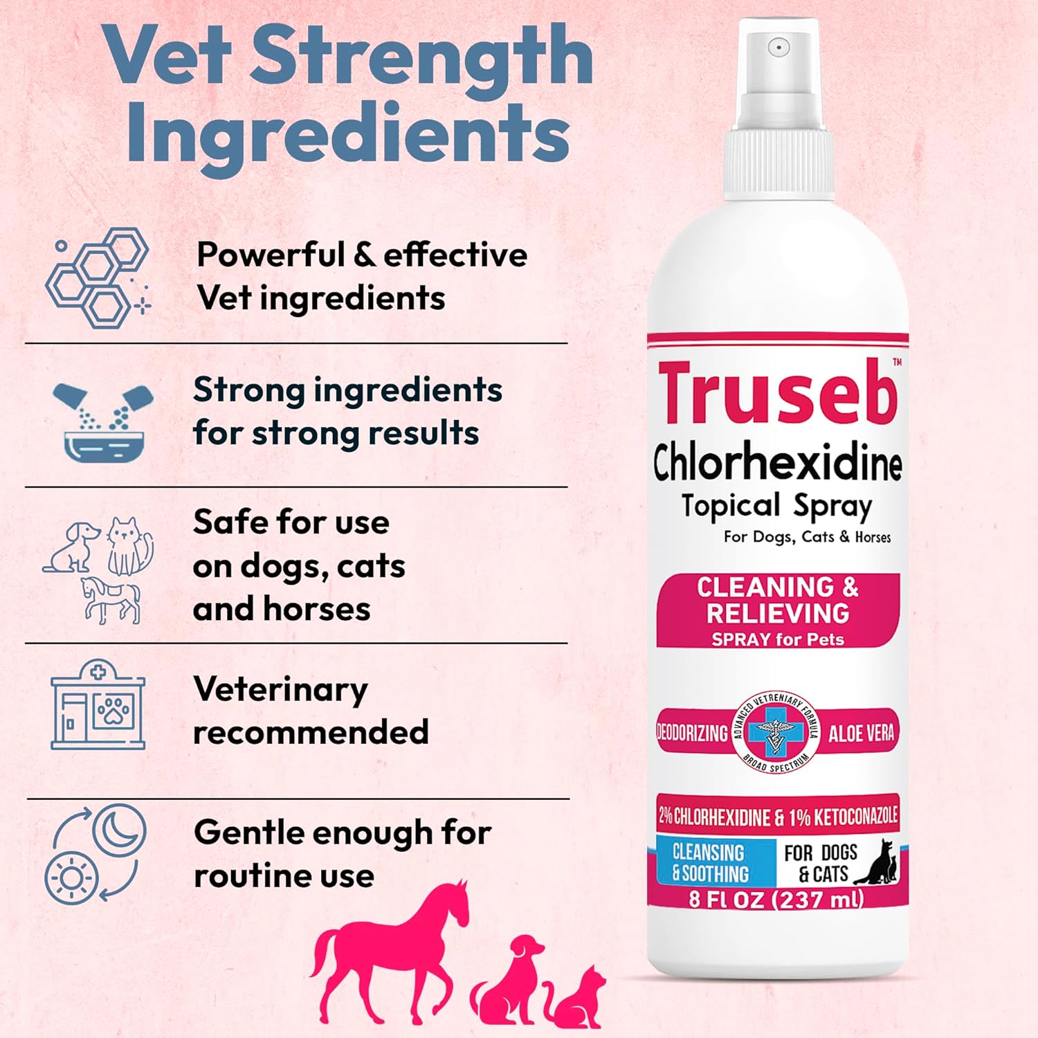 Truseb Topical Ketoconazole and Chlorhexidine Spray for Dogs, Cats, and Horses with Essential Fatty Acids, Aloe and Vitamin E- 16 oz (Ketoconazole & Chlorhexidine Spray, 16 oz)