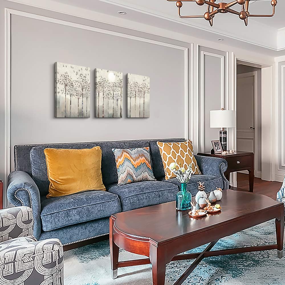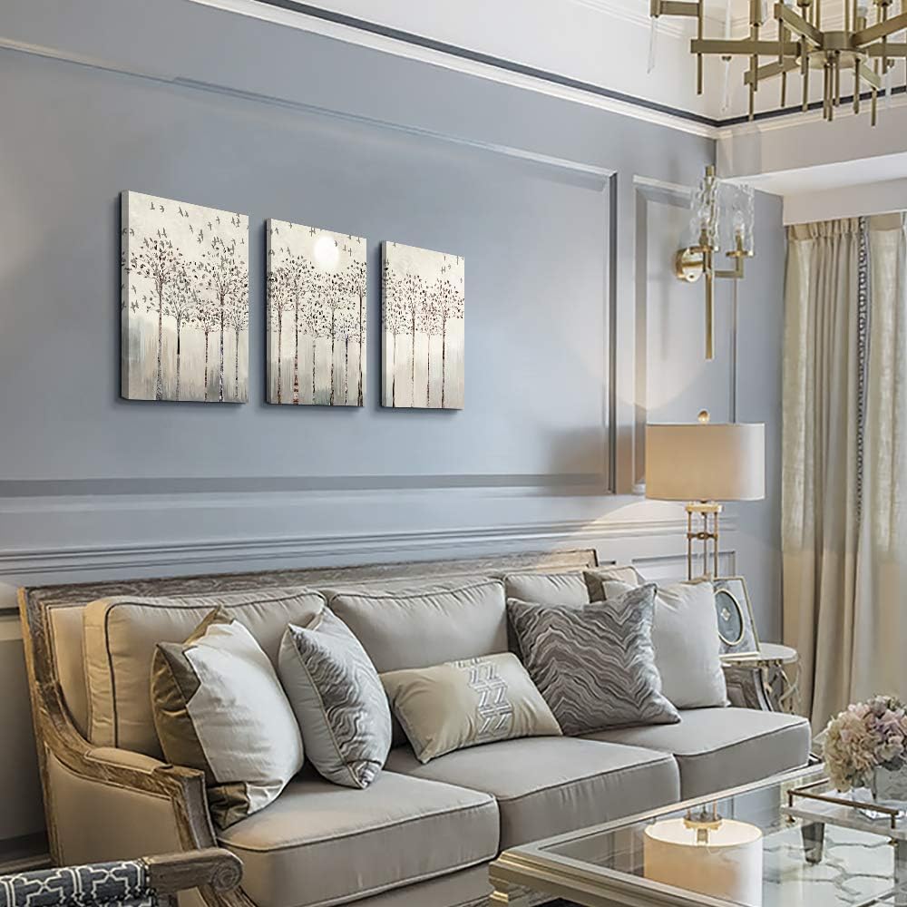 trees and birds Abstract Paintings Canvas Prints Wall Art for Bedroom Bathroom Wall Decor office Artworks Pictures Wall Decorations for Living Room,3 Piece Sunrise and sunset Modern Home Decoration