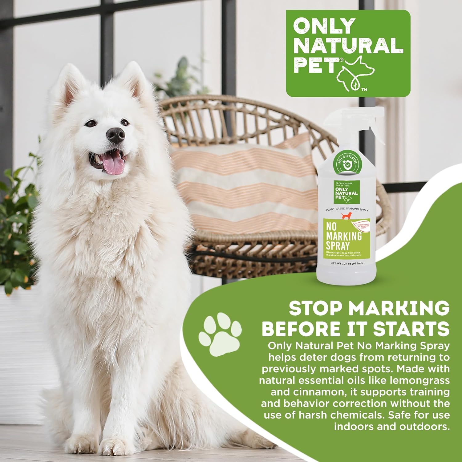 ONLY NATURAL PET No Marking Deterrent Spray for Dogs – Indoor Outdoor Urine Prevention - Stain & Odor Eliminator - Potty Pet Training Aid to Deter Peeing or Marking Carpet or Furniture – 32 Fl Oz