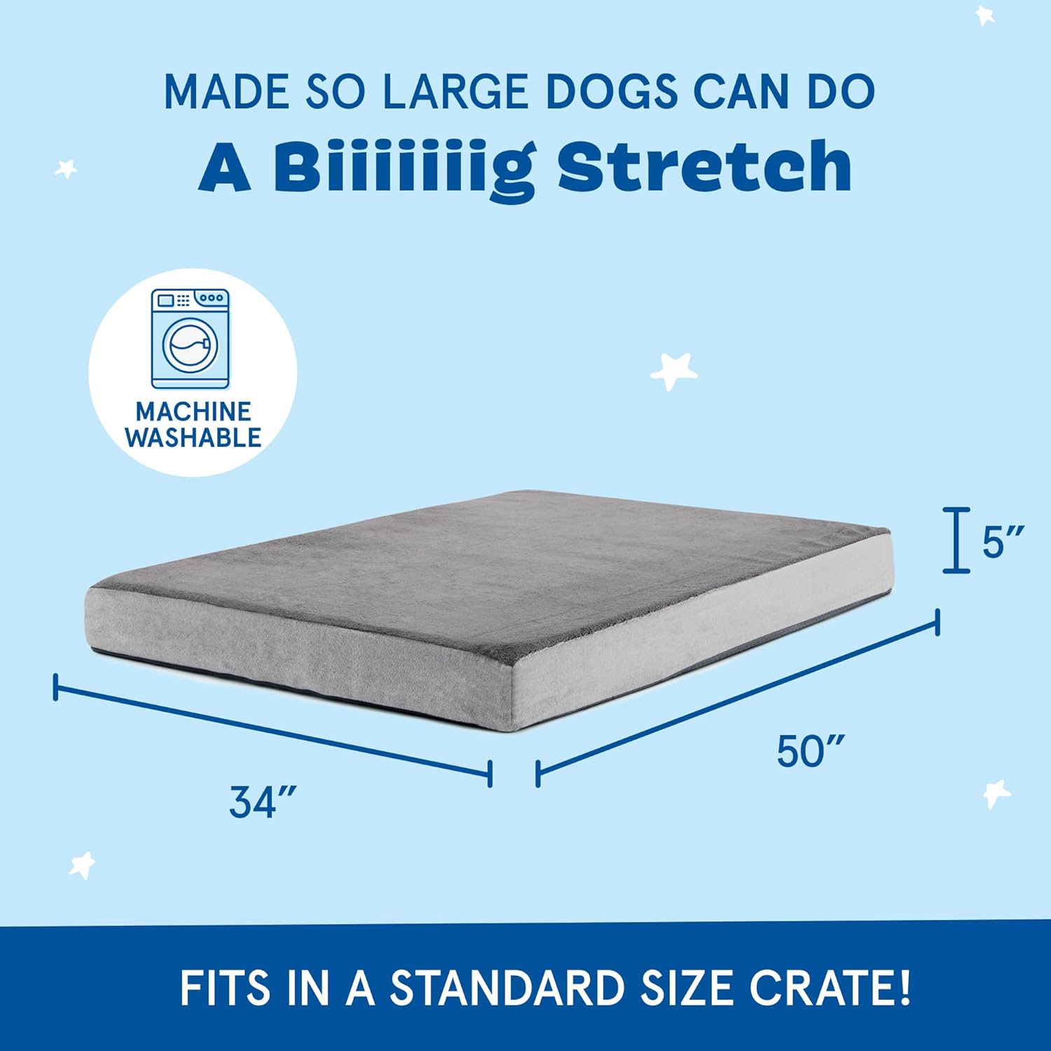 - Ideal for All Sizes: Available in small, medium, large and extra large sizes, this XXL dog bed at 50" x 34" x 5" suits a variety of breeds. Whether you need an dog bed for a crate or an water resistant dog bed, our orthopedic dog bed meets your requirements.
