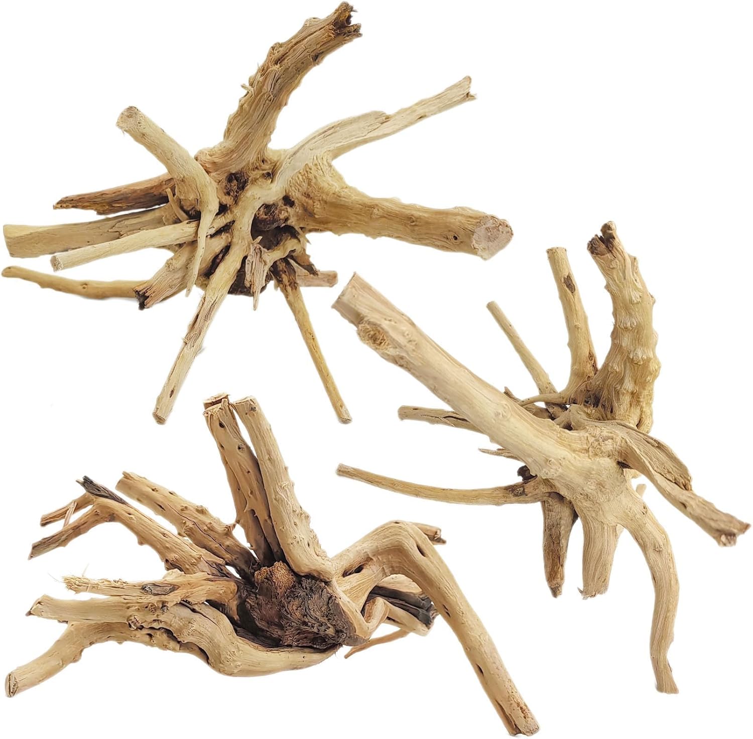Tfwadmx Aquarium Driftwood, 7-11" Spider Wood Sinkable Driftwood for Fish Tank Decorations Natural Branches for Reptile, Assorted Spider Wood Branch Pack of 3