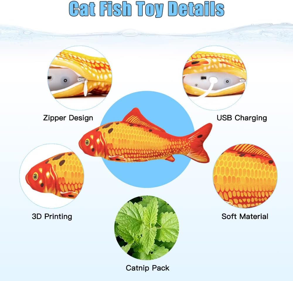 - 【Automatic Moving Fish Cat Toy】When your cat touches this wagging fish toy, the built-in sensor starts to vibrate the fish tail so that it wiggles like a live fish. Which will encourage your cat to kick and play.