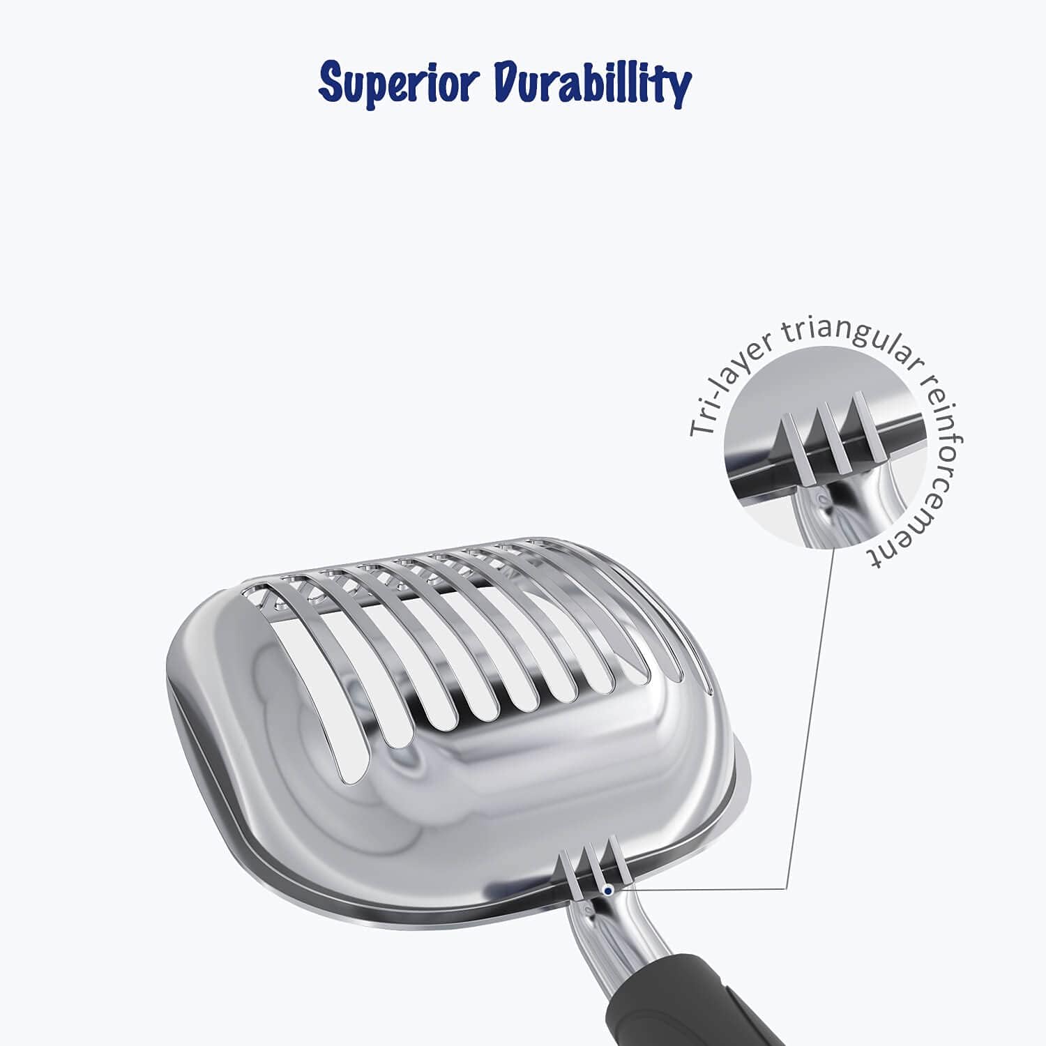 - [Features]: WePet made this scooper durable with heavy duty quality. After investigation with thousands thoughtful users, we finally make an improvement of removing the serrated edge as mentioned on reviews. The body is waterproof and very easy to clean, rust-resistant and corrosion resistant. It’s highly recommended by cat lovers for everyday use.