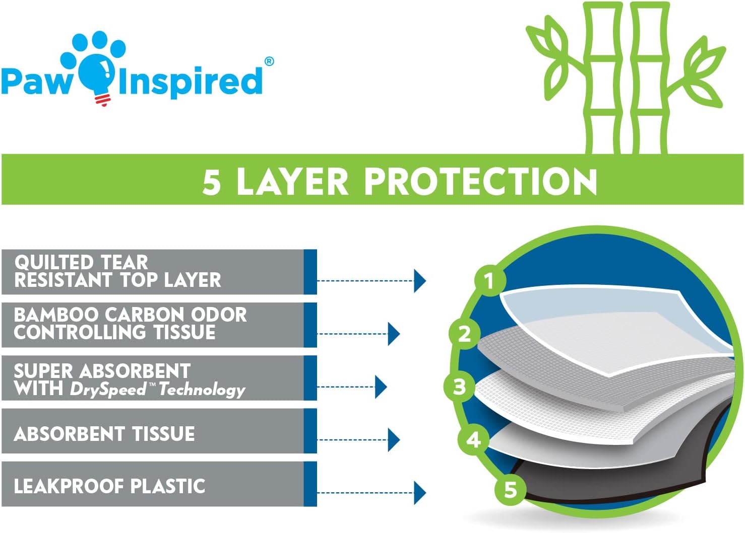 Paw Inspired Disposable Guinea Pig Cage Liners | Bamboo Charcoal Odor Controlling | Super Absorbent Liners Pee Pads for Ferrets, Rabbits, Hamsters, and Small Animals (47" x 26" (Midwest), 8 Count)