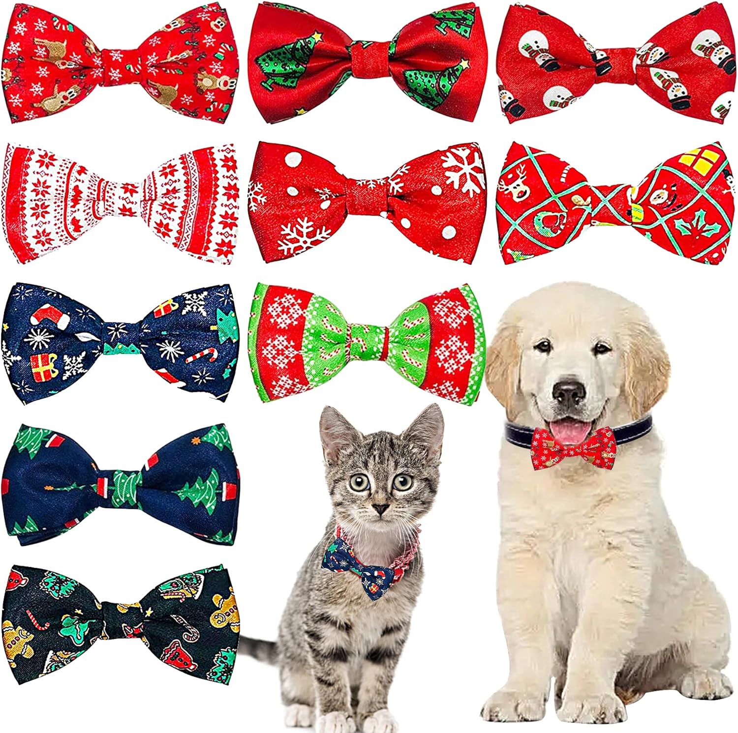 - You'll get 10pcs different styles bow ties: Christmas tree, deer, snowflake. They will help your pets outstanding on the Christmas holidays.
