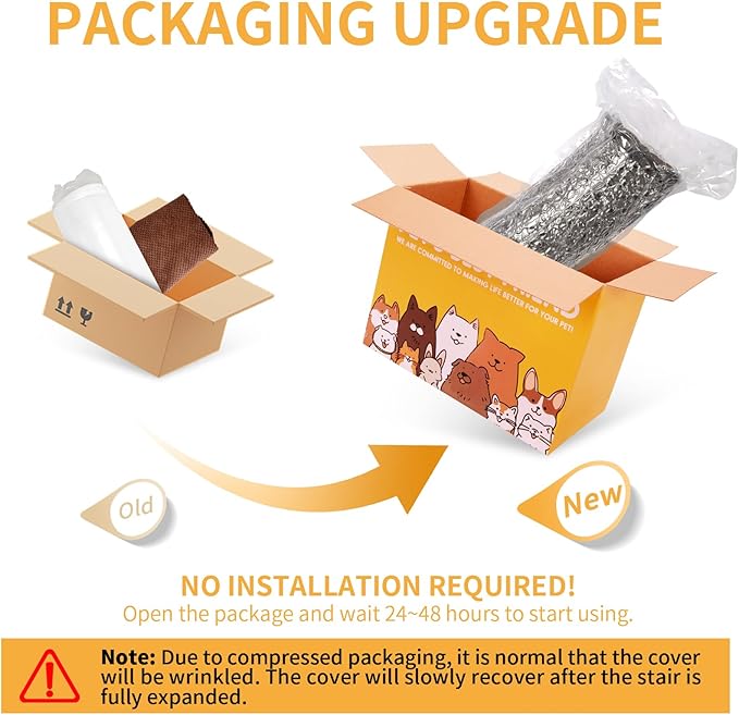 - Special Notice:Our dog ramp is packed in a vacuum compression package,please make sure to open all packages before use, let the sponge come in contact with the air, and it takes time to rebound after opening. Generally, it can fully rebound after 24-48 hours, depending on the temperature, the higher the temperature, the faster the rebound.