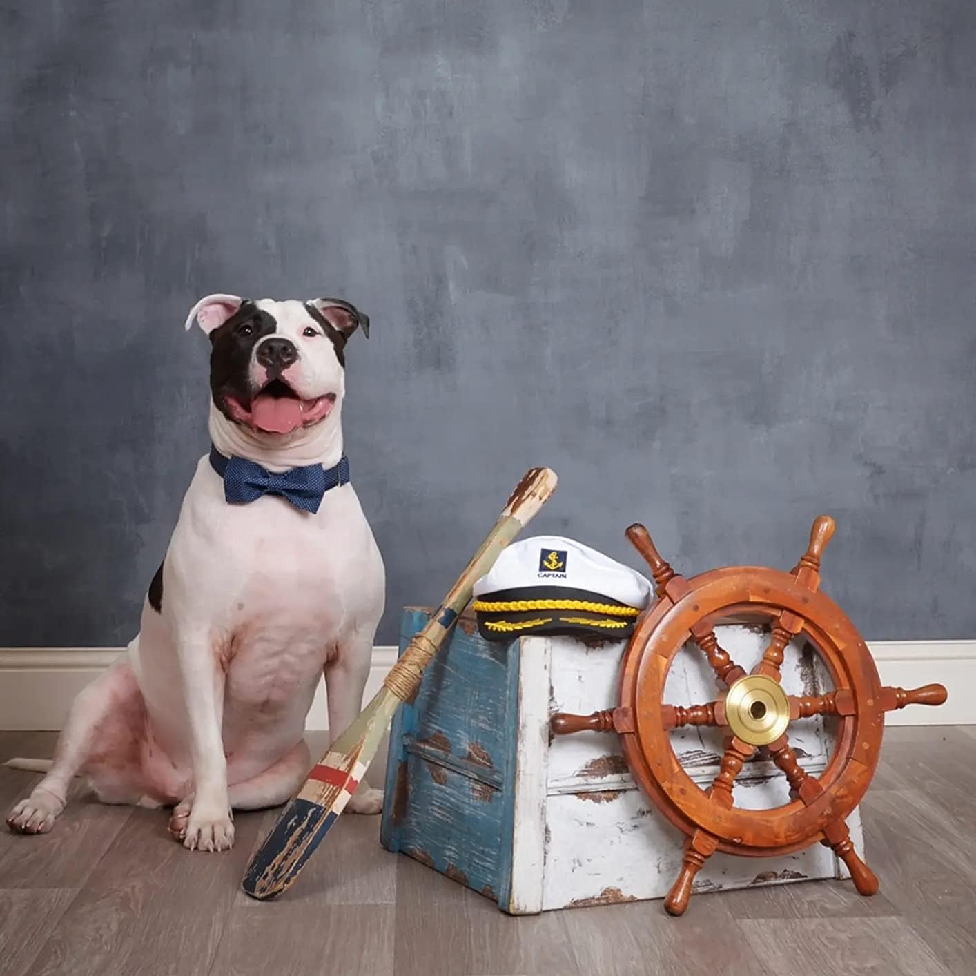 Lionet Paws Boy Dog Collar with Bowtie, Comfortable Adjustable Cute Navy Blue Bow Tie Collar for Male Puppies and Cats Gift, XXS, Neck 7-11 inches