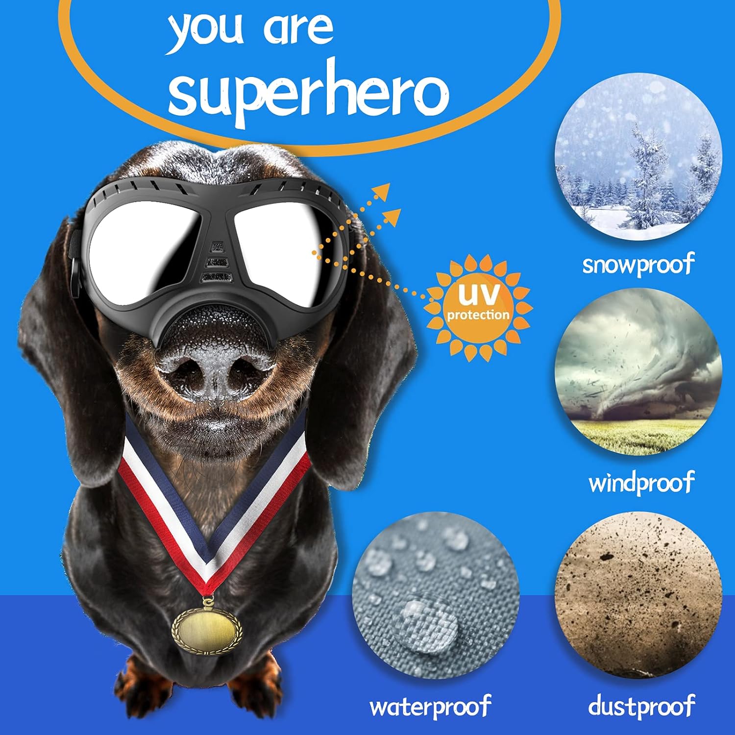 NVTED Dog Goggles Big Area Dog Sunglasses, Large Breed Windproof Snowproof Eye Protection Pet Glasses for Outdoor Driving Cycling (Large)