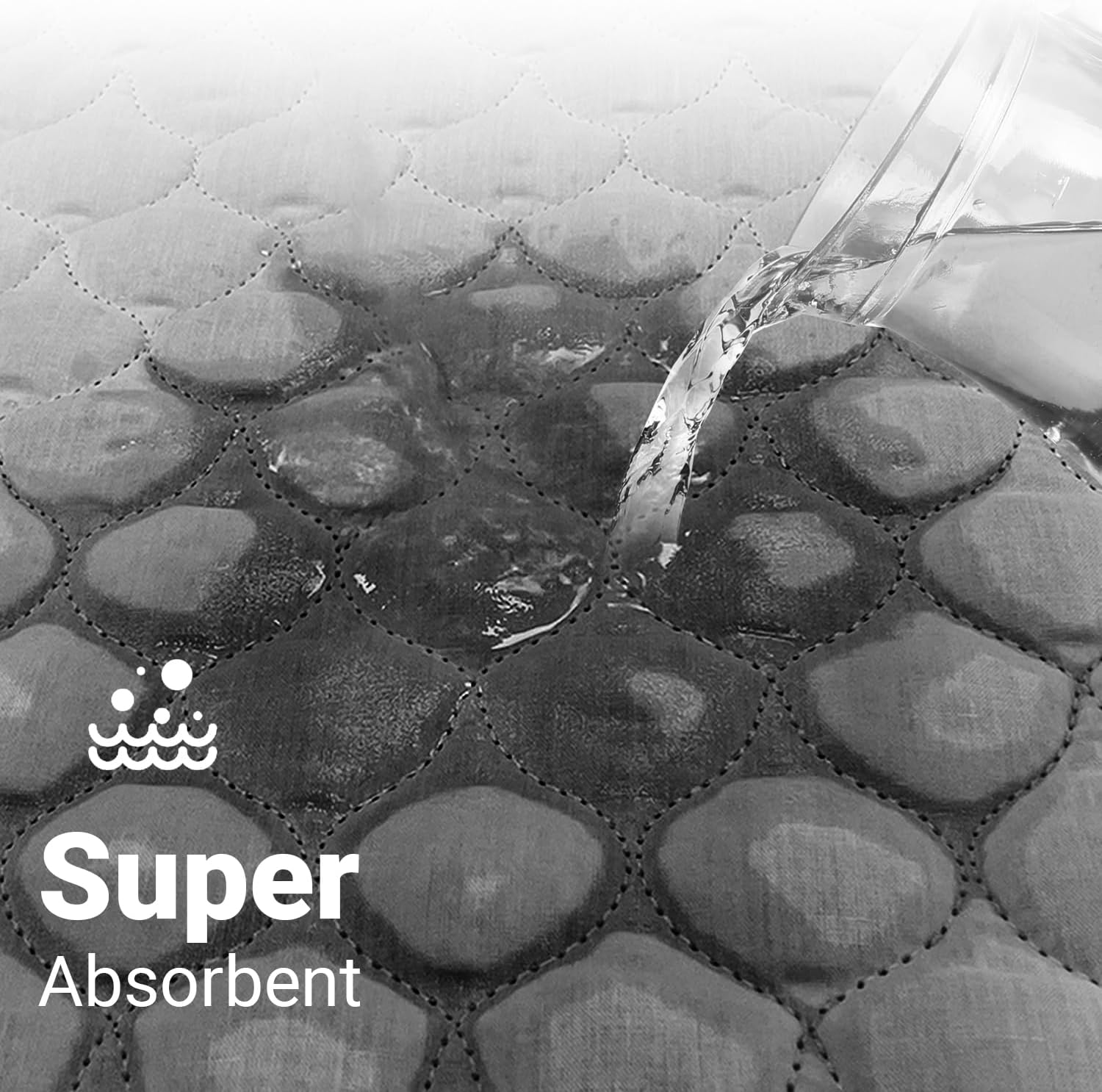 - HEAVY ABSORBENCY & WATERPROOF: 48" x 60" reusable pee pads is made of 4-layer high quality fabric. The surface layer and middle layer are made of ultra soft and great absorbent materials, which absorb liquid quickly. Bottom is made of waterproof, leak-proof and non-slip material, keeping the pad clean and dry at all times.