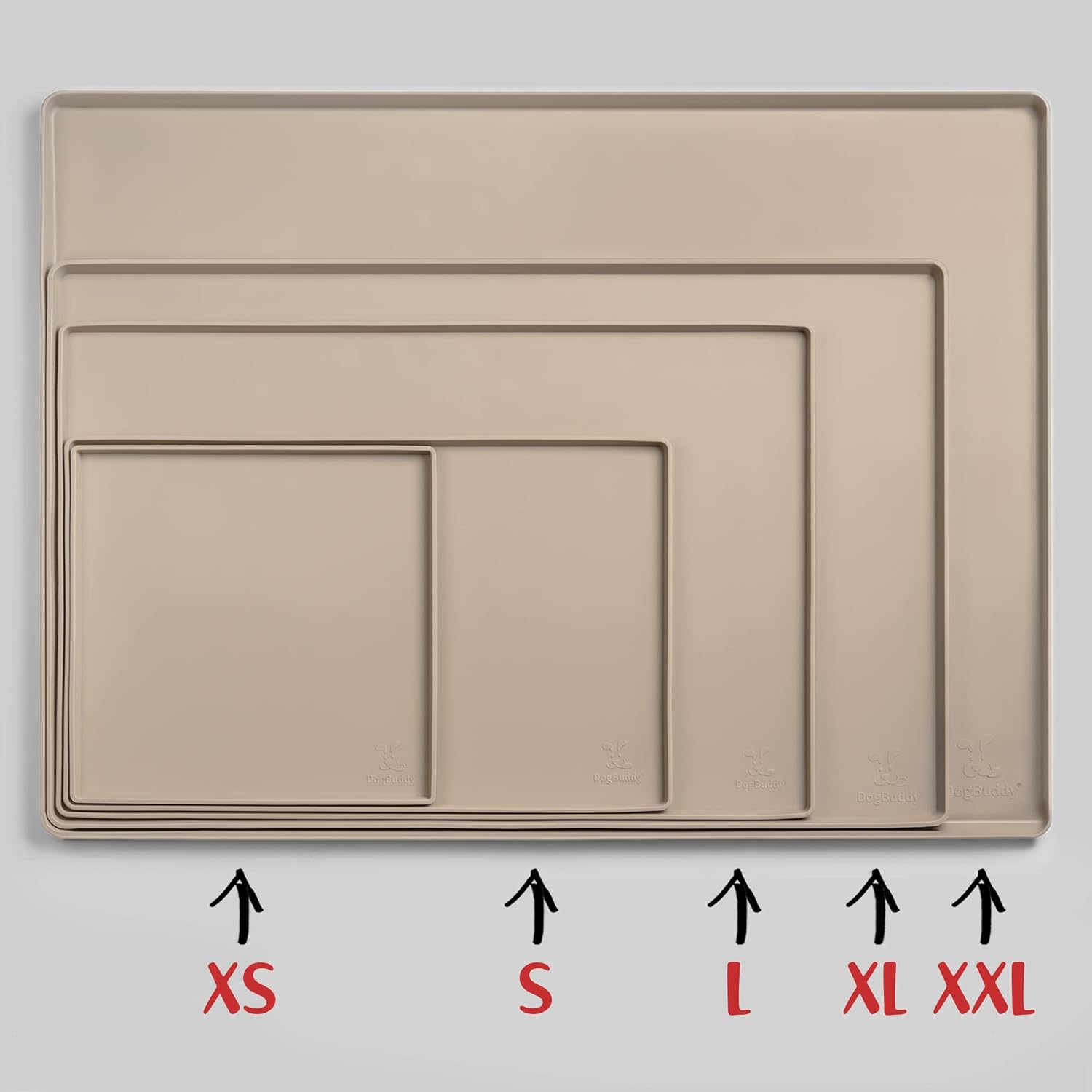 DogBuddy Dog Food Mat – Waterproof Dog Bowl Mat for Food and Water, Silicone Pet Feeding Mats for Floors, Non-Slip Placemat with High Edges for Dogs Bowls, Puppy Essentials (XL: 28" x 18", Taupe)