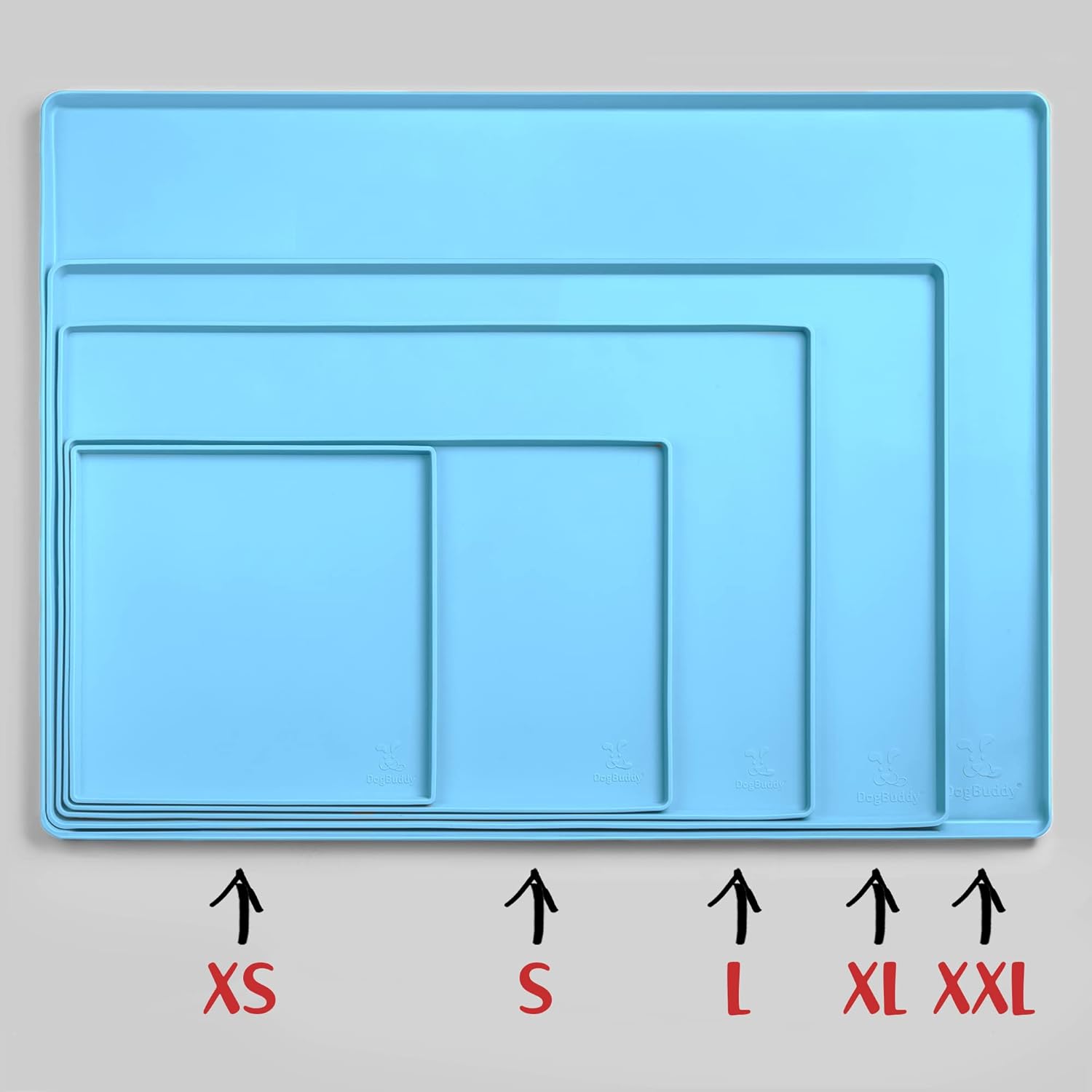 - Less Mess & Less Stress: Super high edge (0.6”) of DogBuddy Dog Food Mat keeps the spilled food and water on the mat and away from your beautiful floor. Silicone is naturally 100% waterproof, so what happens on the mat stays on the mat.