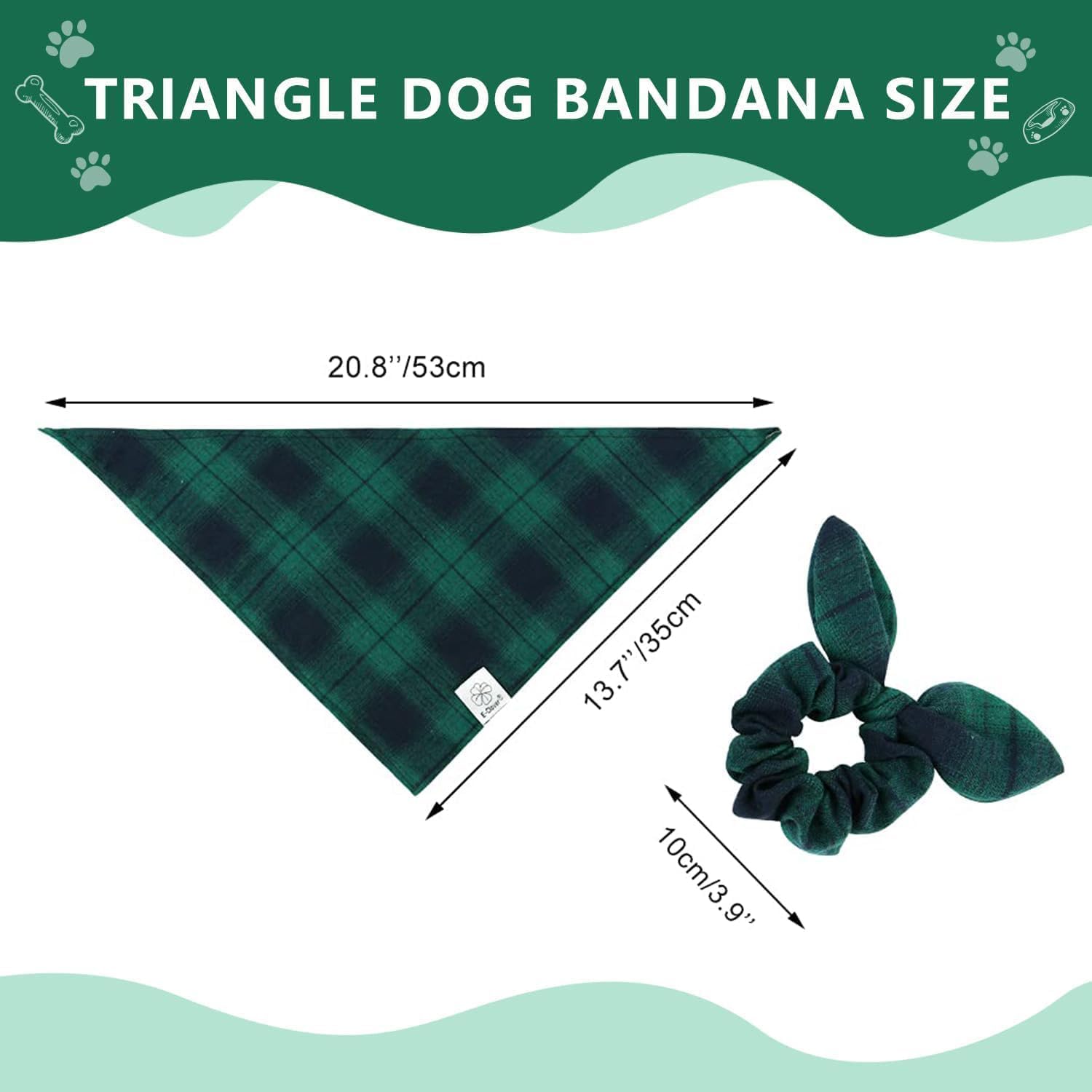- Matching Bandana and Scrunchie Set - It’s full of love when your pets is wearing the buffalo dog bandana boy and you are wearing the bow scrunchies. When traveling, sleeping, taking photos or daily walking, adorable St Patricks Day dog bandana and plaid scrunchie is a pretty accessories. The scrunchie can be worn as a wrist accessory and hold your hair. Beautiful dog bibs and bow scrunchie with green tartan pattern, it’s nice photo props for holiday.