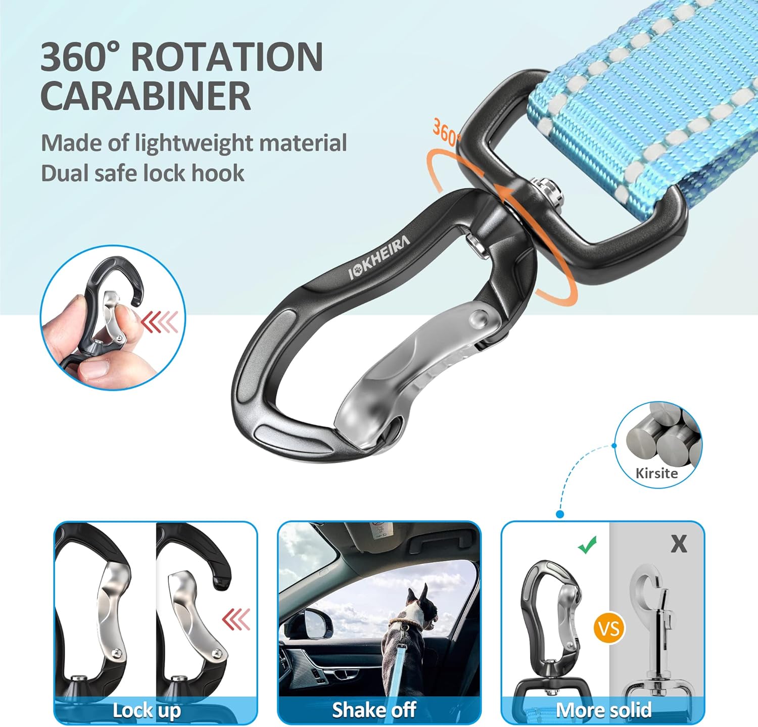 - Double Buckle Design: Our IOKHEIRA dog seat belt is designed with two different types of safety buckles on one end. One is hook latch, which can attach to the child safety seat and the car trunk. The other one is seatbelt buckle, which is the same as a typical human seat buckle, can stick directly into the seatbelt slot. Our buckle design is universal for all cars!