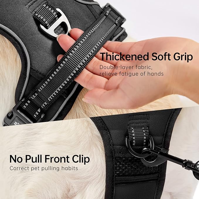 NESTROAD No Pull Dog Harness,Adjustable Oxford Dog Vest Harness with Leash,Reflective No-Choke Pet Harness with Easy Control Soft Handle for Large Dogs(Large,Black)