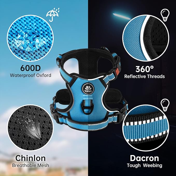 - 【SELECTED ACCESSORIES】 Our no pull harness includes 1 professional dog leash & 1 retractable seatbelt & 1 storage strap, which makes walking dogs a pleasure. We provide several size harnesses for small dogs to large dogs, more details please refer to the sizing chart.