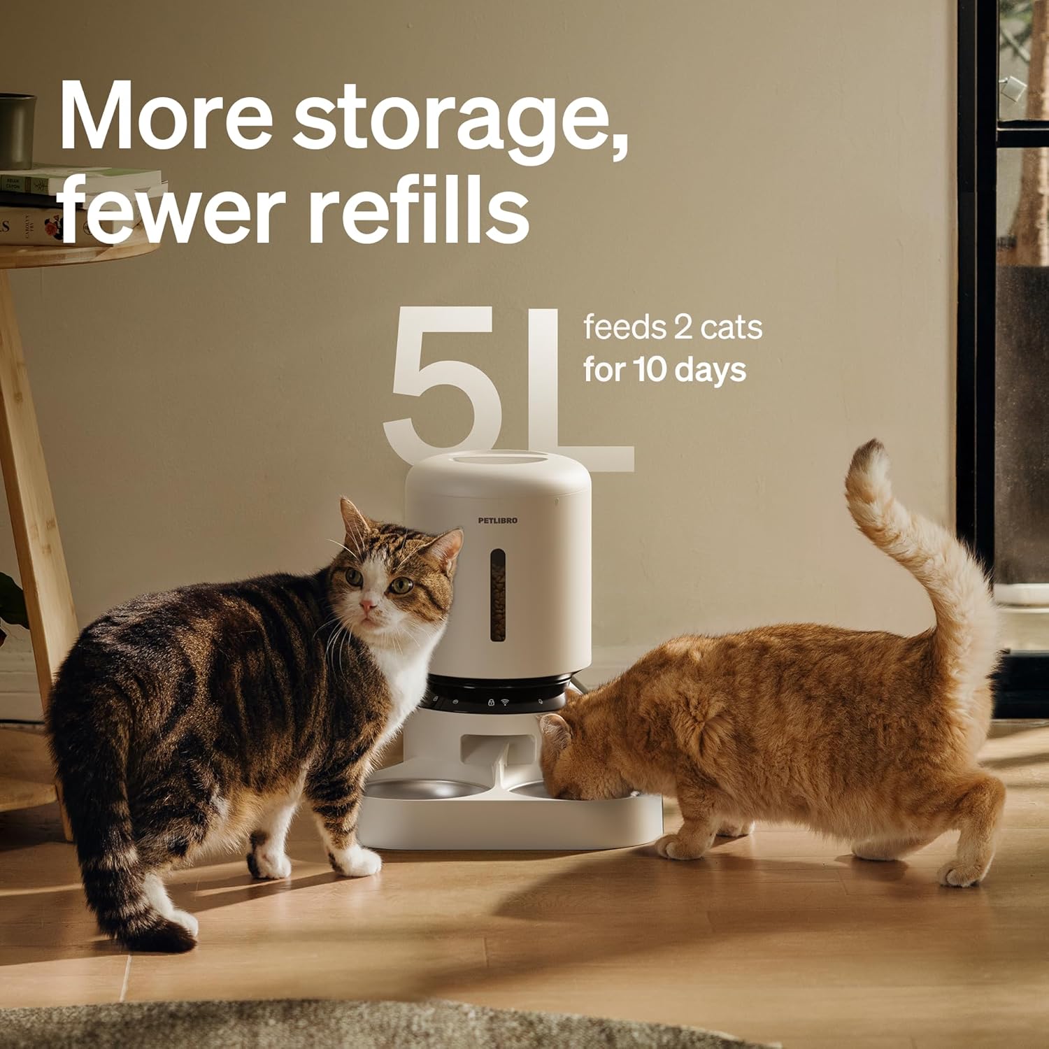 PETLIBRO 5L Automatic Cat Feeder for 2 Cats, 5G&2.4G Wi-Fi Programmable Cat Food Dispenser with Dual Stainless Steel Bowls, Airtight Lock Fresh Technology, Low Food Sensor
