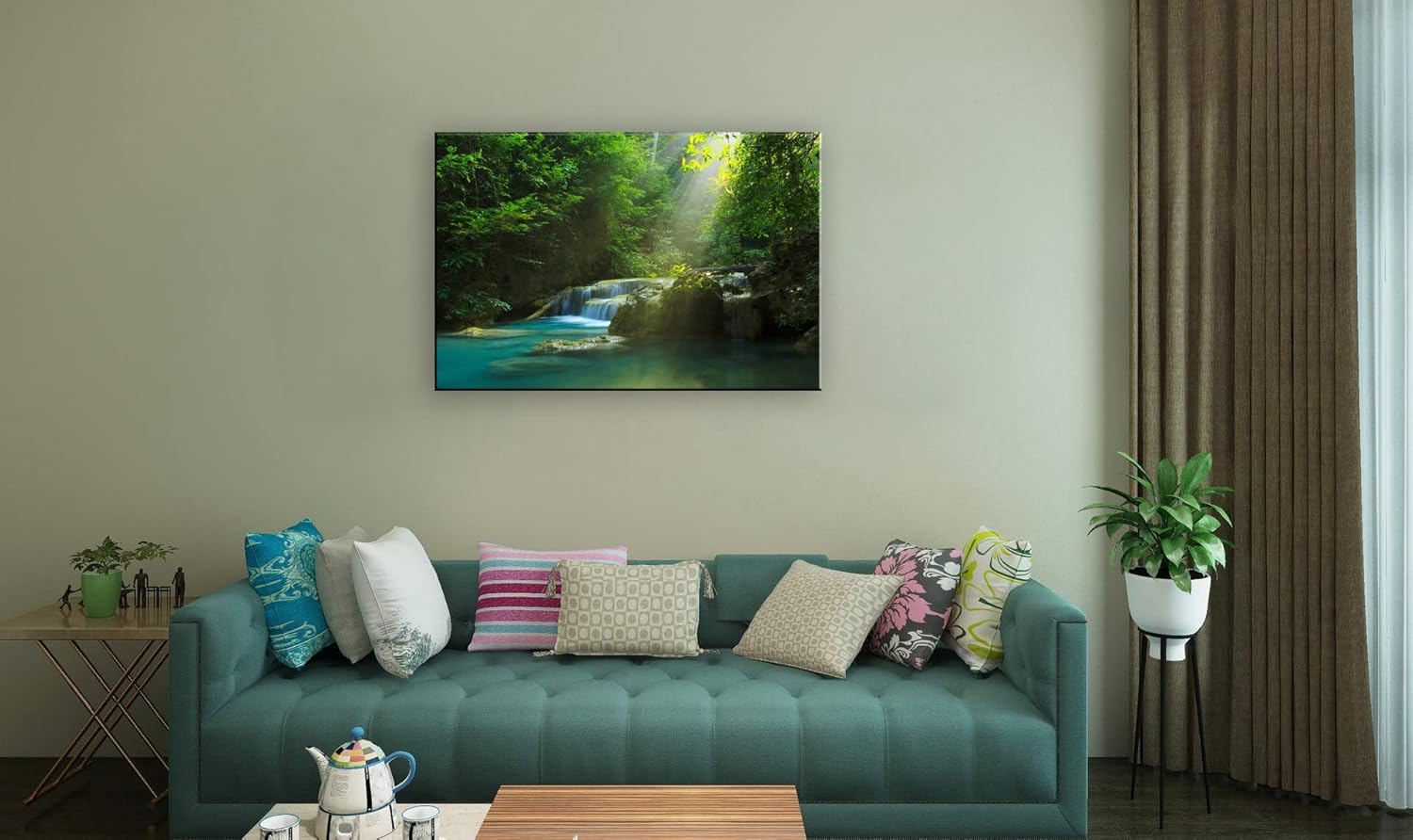 Silent Summer Forest Landscape Stretched Canvas Wall Art for Living Room Home, Bright Sun Shine on Stream Scenery Picture Print Artwork Decoration Painting Decor, Gallery Wrapped, Inner Frame (24x36)