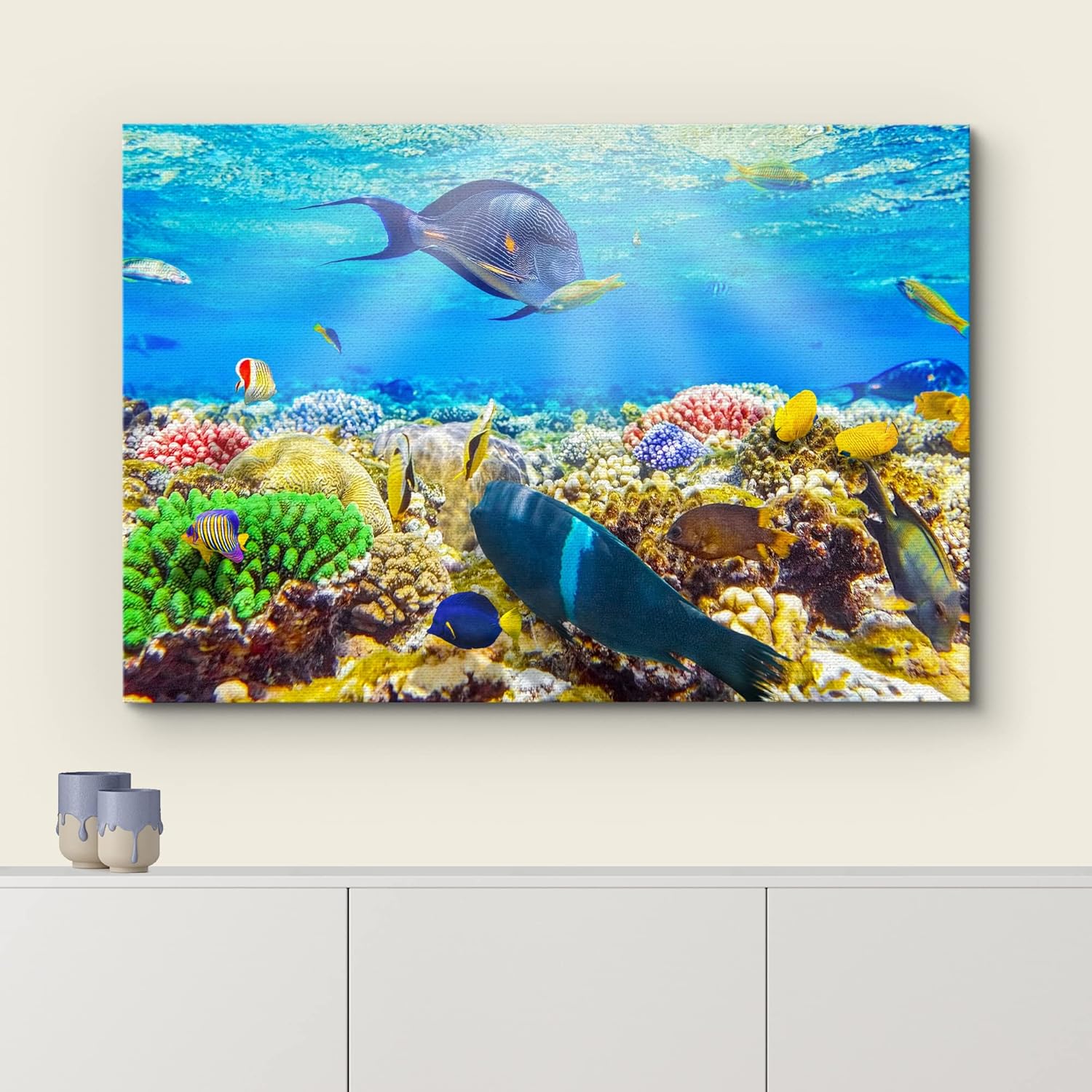 wall26 Canvas Print Wall Art Sunlight Ocean Sea Coral Reef Anemone Fish Nature Animals Photography Realism Rustic Scenic Landscape Wilderness Earth for Living Room, Bedroom, Office - 16"x24"