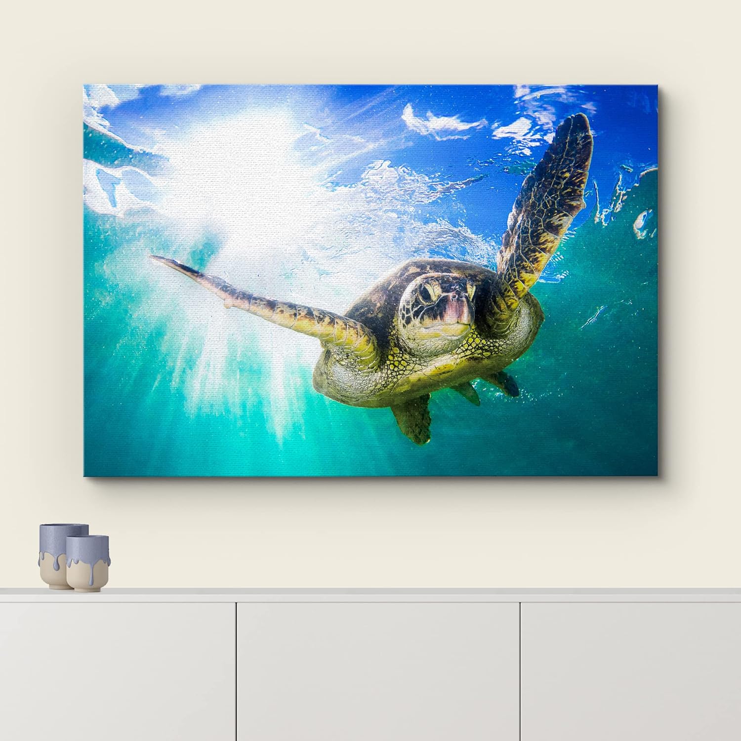 wall26 Canvas Print Wall Art Sunlight Tropical Ocean Underwater Turtle Nature Animals Photography Realism Rustic Scenic Landscape Wilderness Earth Colorful for Living Room, Bedroom, Office - 24"x36"