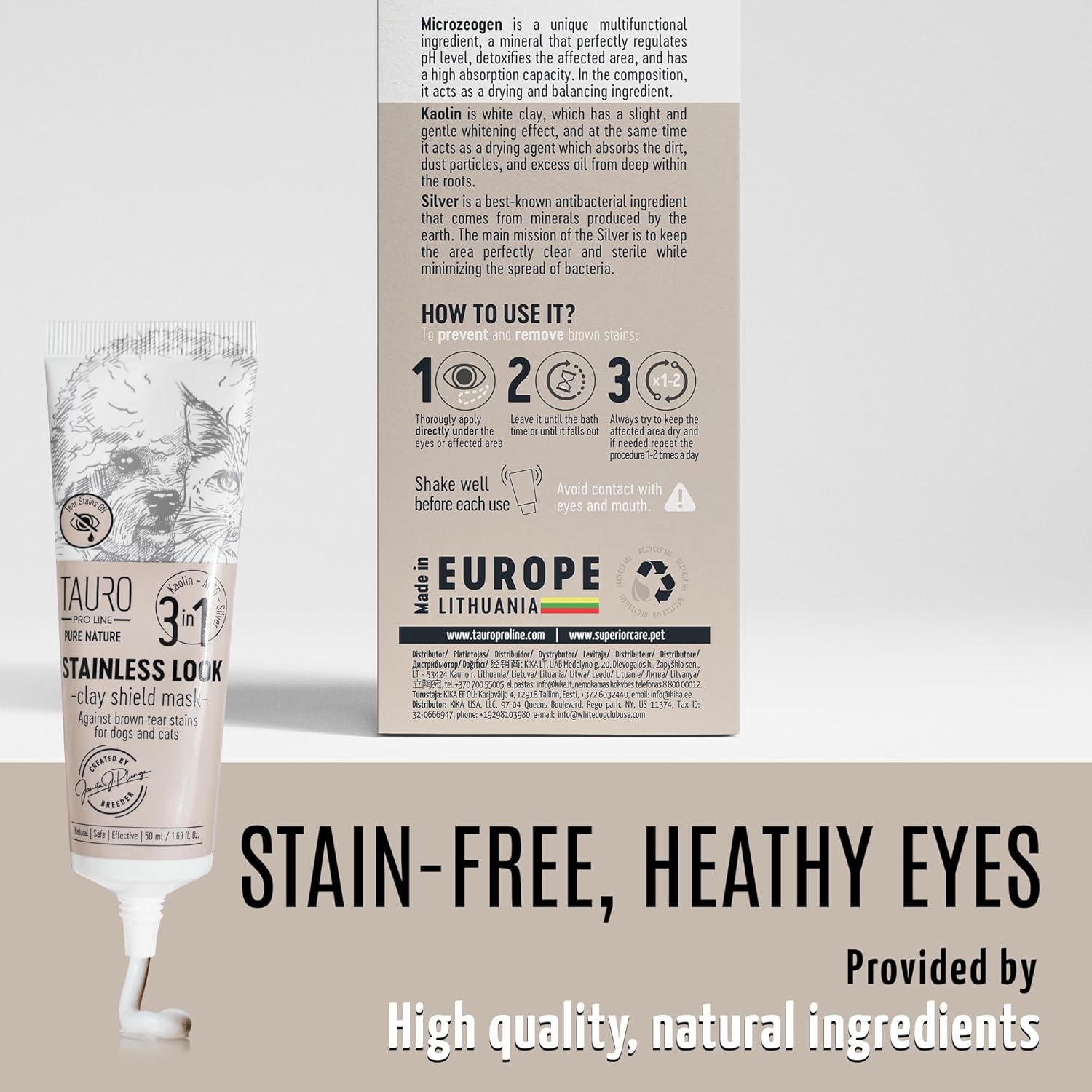 Tauro Pro Line Clay Tear Stain Remover for Dogs - Shield Mask for Eyes, Ears, Mouth, Gentle Grooming Product for Dogs, Puppy & Cat (Stainless Look - 1.69 Fl Oz)