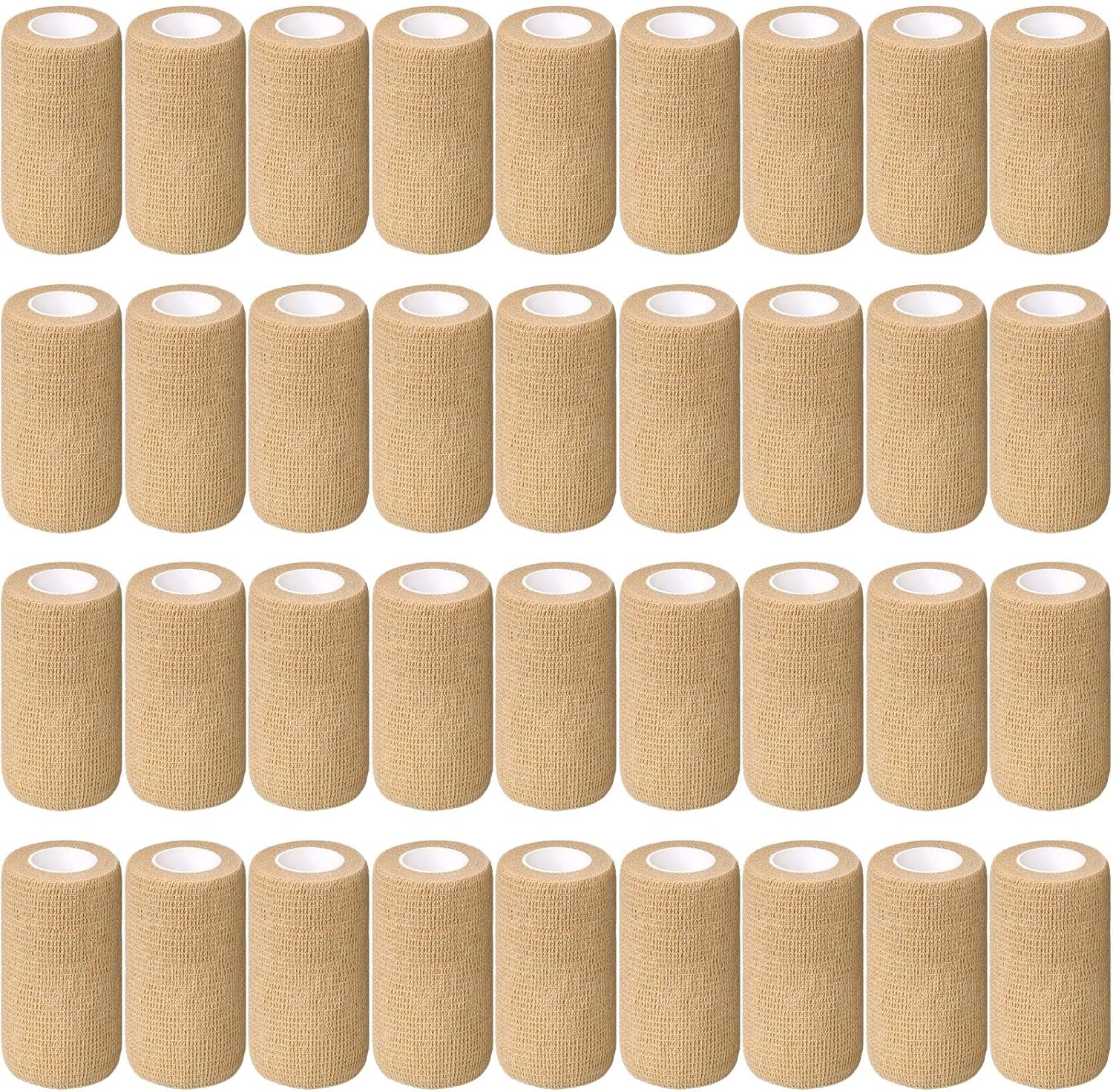 Treela 36 Pcs Self Adherent Bandage 4" X 5 Yard Wrap Breathable Cohesive Bandage Elastic Adhesive Tape for Stretch Athletic Sports Wrist Ankle(Nude)