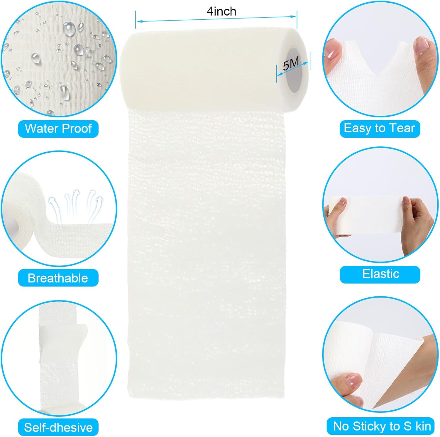 - Long Service Time: each cohesive bandage wrap measures approx. 4 inch x 5 yard, long enough for your long term usage, lightweight and compact, easy to carry; You just need to tear it off and wrap it around your wrists, fingers, ankles, back, knees and other body parts