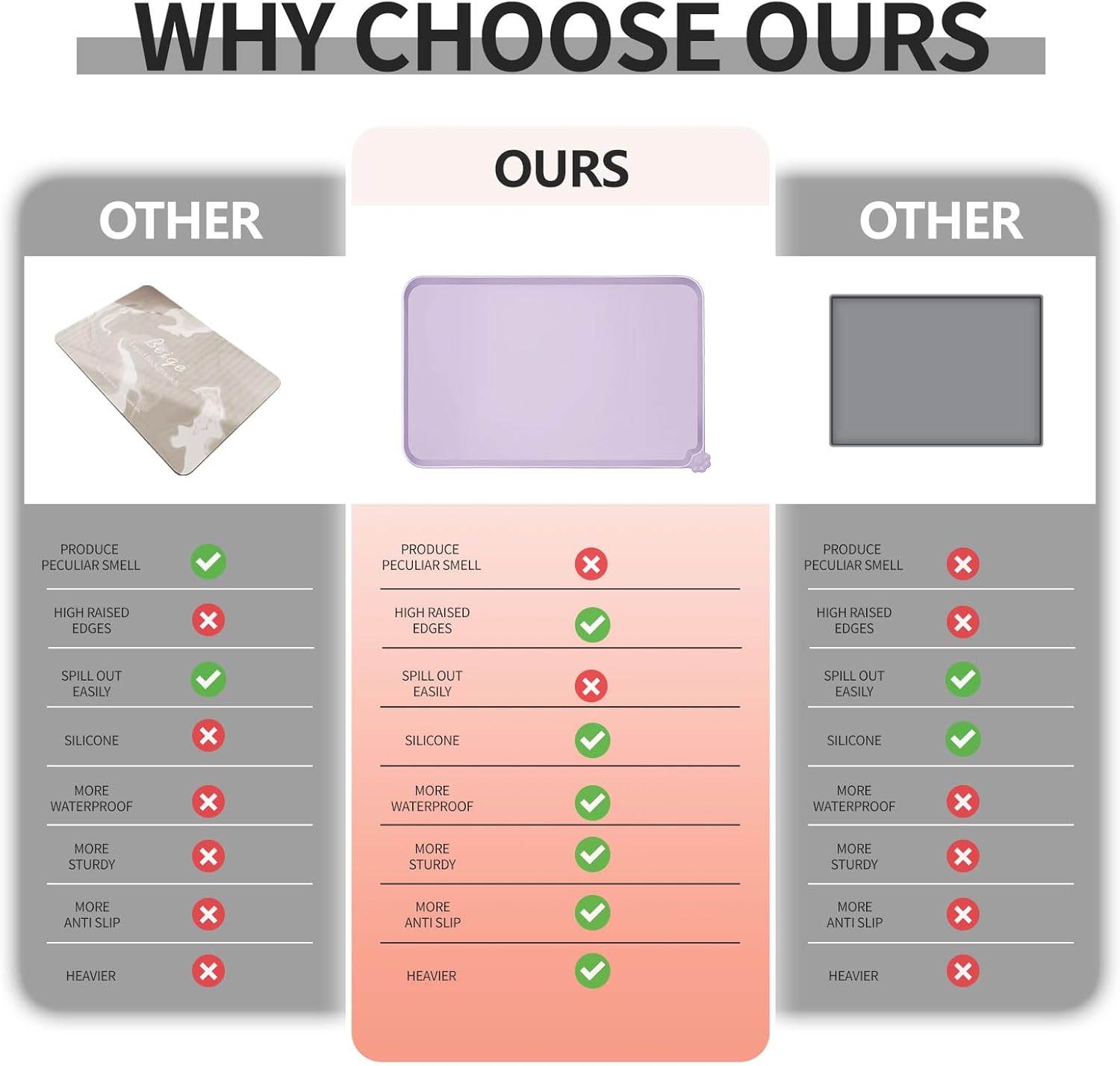 • High-raised edges: say goodbye to messy floors with our mats' high-raised edges that protect your floors from spills and splashes. Keep food and water contained and your floors mess-free