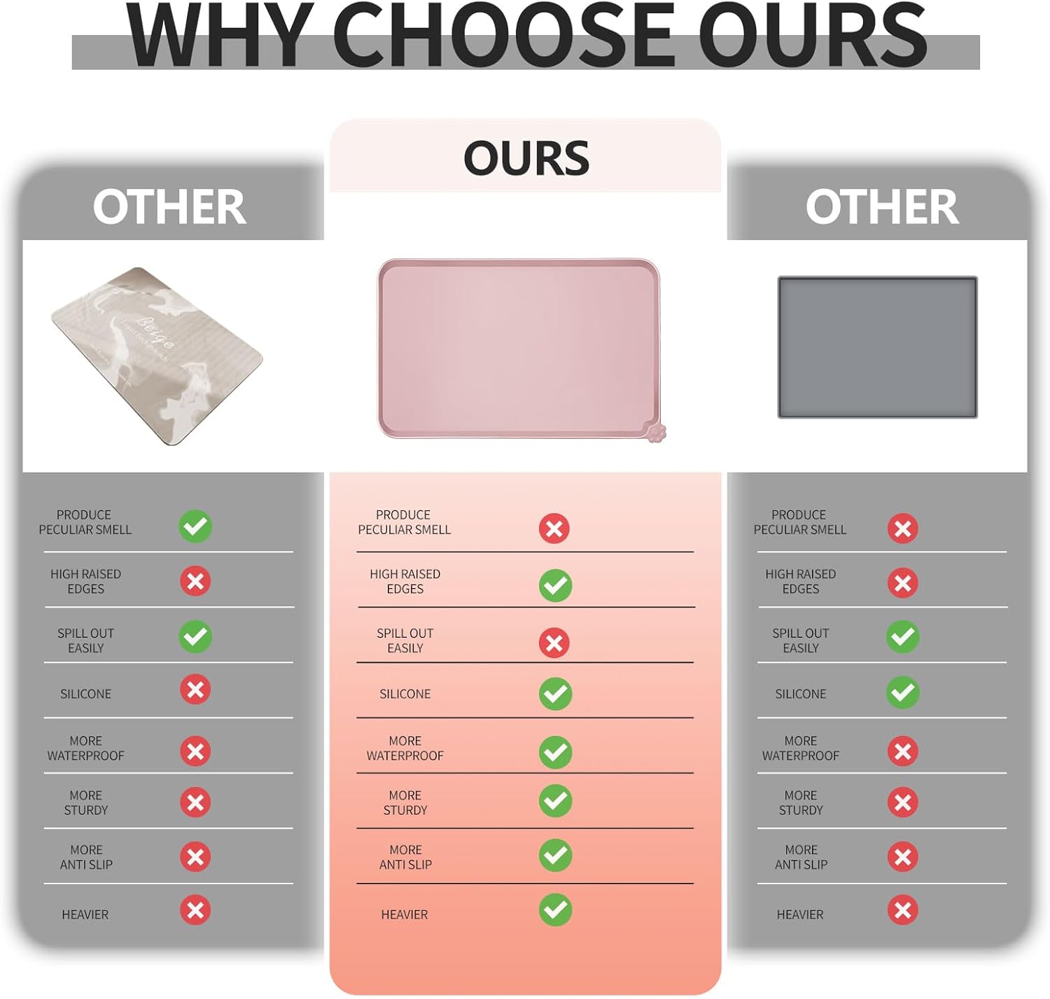- High-raised edges: say goodbye to messy floors with our mats' high-raised edges that protect your floors from spills and splashes. Keep food and water contained and your floors mess-free