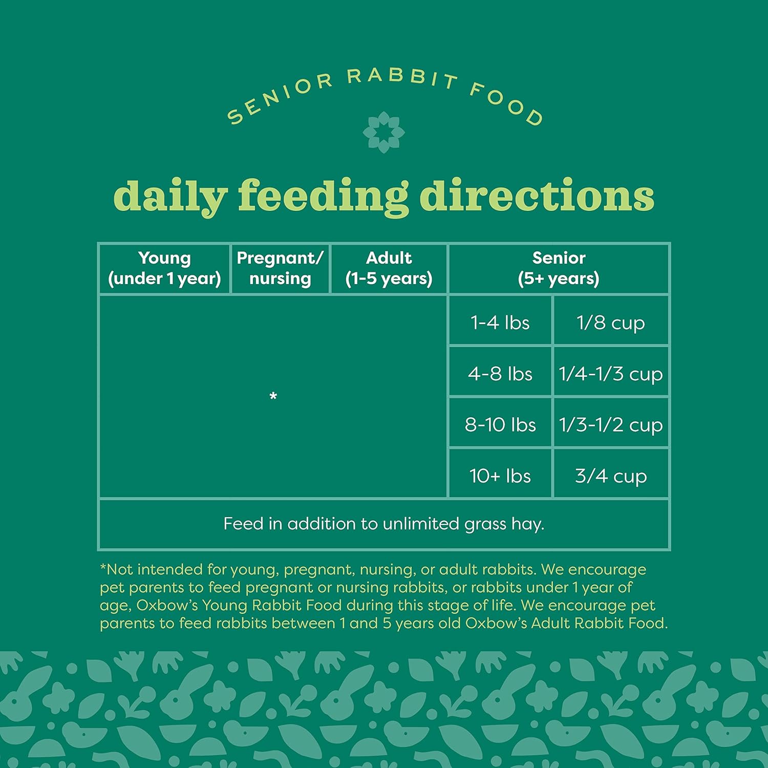 - Specially formulated to support the unique needs of aging rabbits