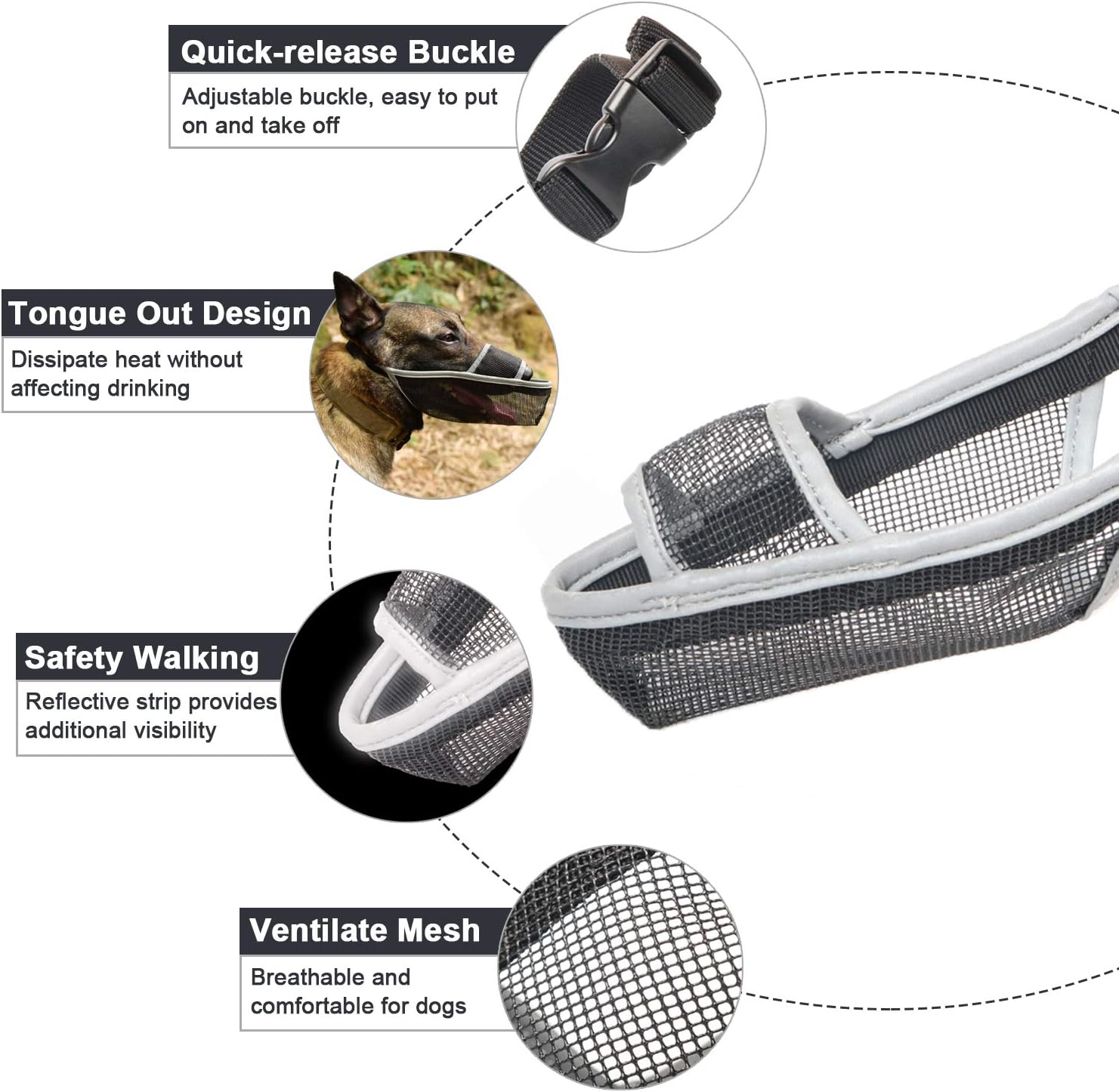 - Humanized Dog Muzzle: The front part of the dog mussel is opened, which allows your dog to full pant, drink, and be rewarded with snacks. Made of long-lasting reinforced stitching and non-sticky hair material, the muzzle for dogs provides the ultimate comfort for your pet.