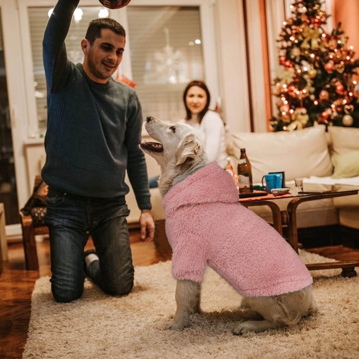 Fuzzy Dog Sweaters for Large Dogs Pet Hoodie Clothes Warm Soft Pet Coats Hooded Sweatshirt Dog Sweaters for Extra Large Dogs(Pink-XXL)
