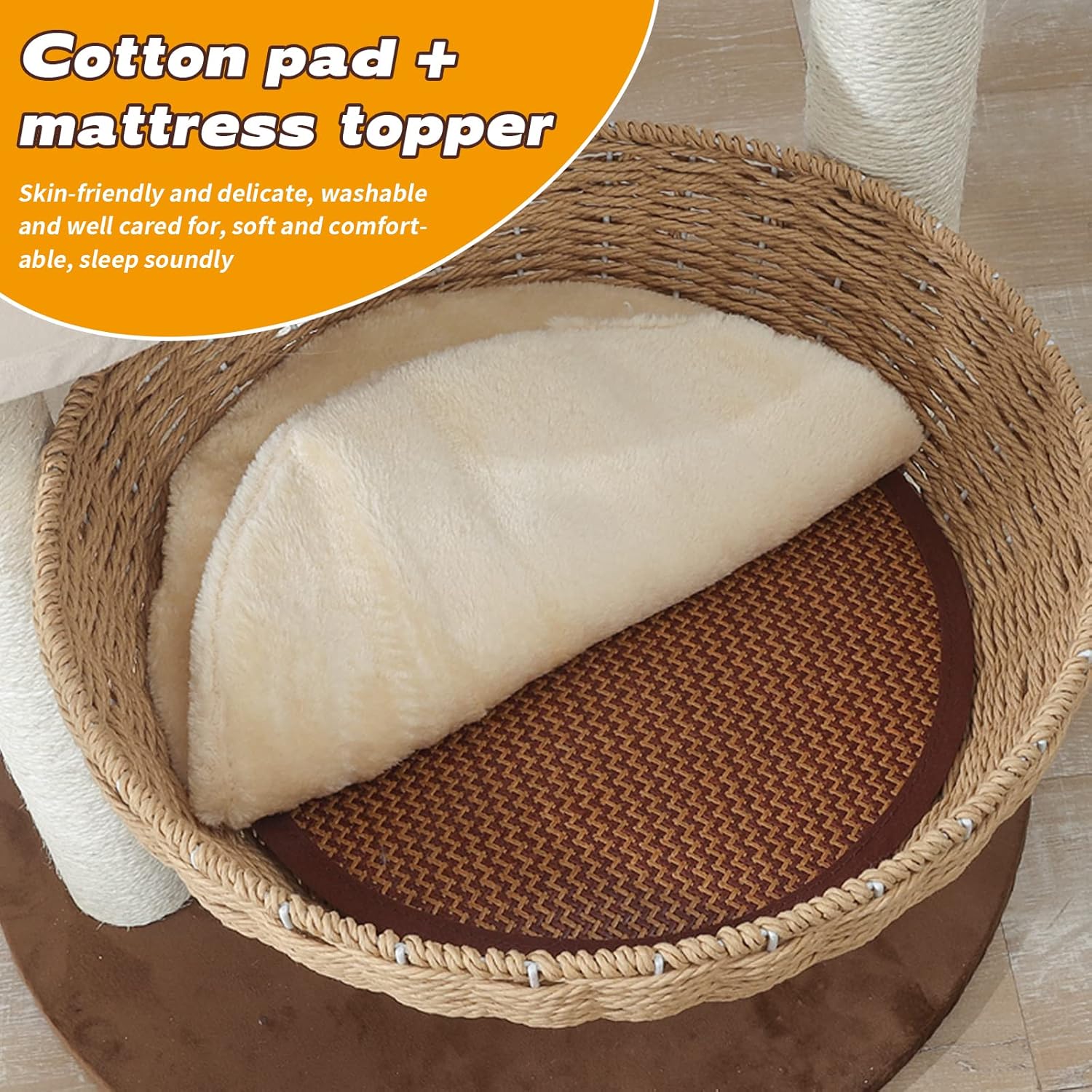 - Natural Materials. This wood cat tree is made of E1 Grade Particle Board, Kraft Paper Pillar, Natural Sisal Rope, Ma Teng Cat'S Nest with crafted workmanship, Ensuring long service life. And each scratching post is covered by natural sisal ropes that are safe for cats to scratch. In addition, The skin-friendly plush covering offers your feline maximum softness and optimum warmth. Cat tree cat tower cat condo.