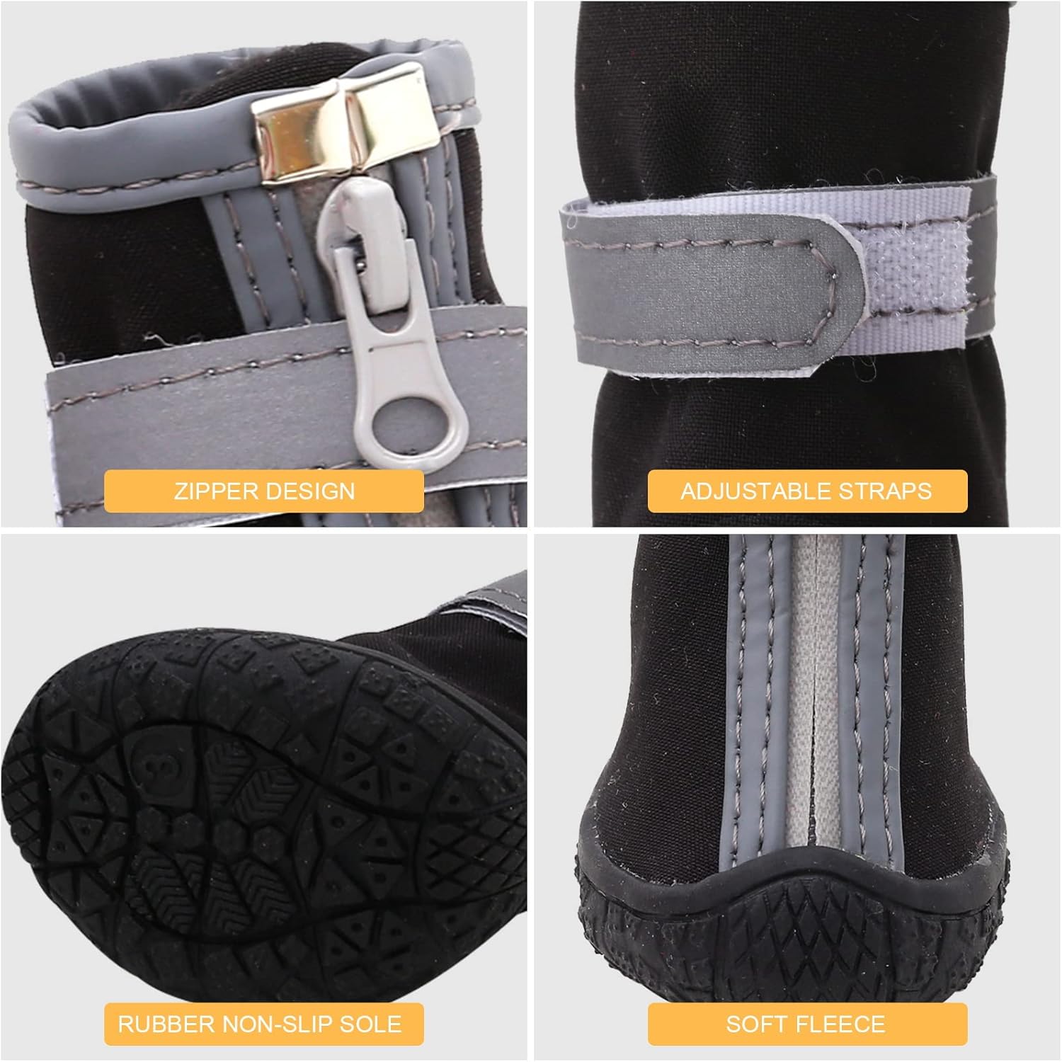 Dog Shoes for Small Dogs, Puppy Dog Boots & Paw Protector for Winter Snow Day, Summer Hot Pavement, Waterproof in Rain Weather, Ourdoor Hiking, Indoor Hardfloors with Anti Slip Sole 4PCS/Set
