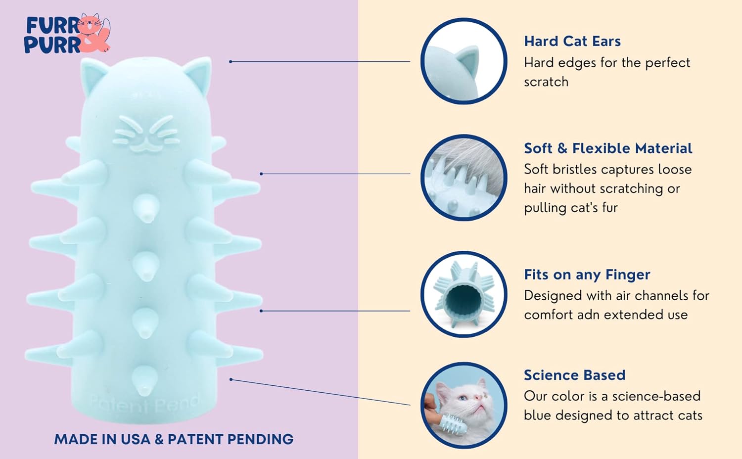 Furr&Purr Cat Brush, Scratcher, and Massager - Indoor Cat Calming Care with Face Scratcher, Finger Brush (3-Pack, Made in USA)