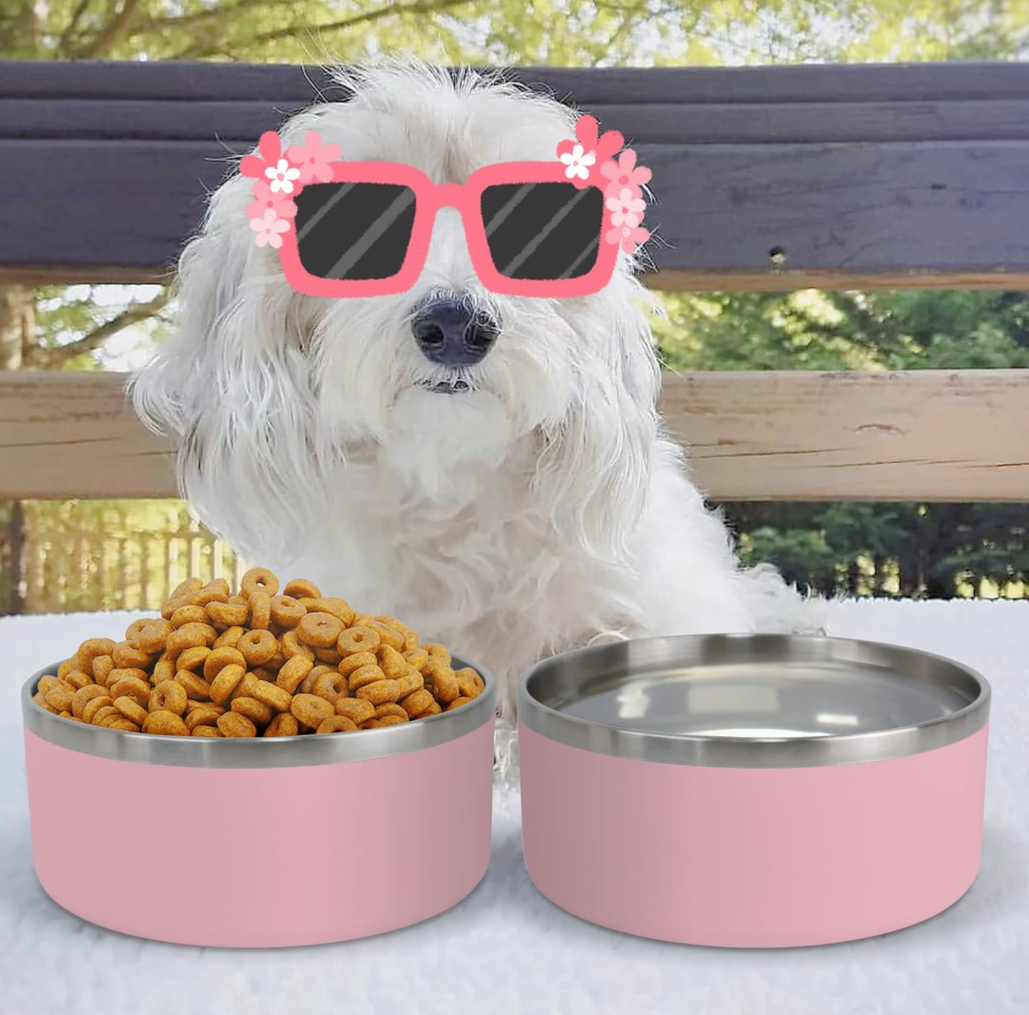 - STAINLESS STEEL DOG BOWLS-Our food and water bowls for dogs are made of double wall insulation and 304 food grade stainless steel, which is super long lasting, rustproof, scratchproof, environmental friendly. The outside of our non-slip dog bowls are made of Acrylonitrile Butadiene Styrene (ABS) for more durability.