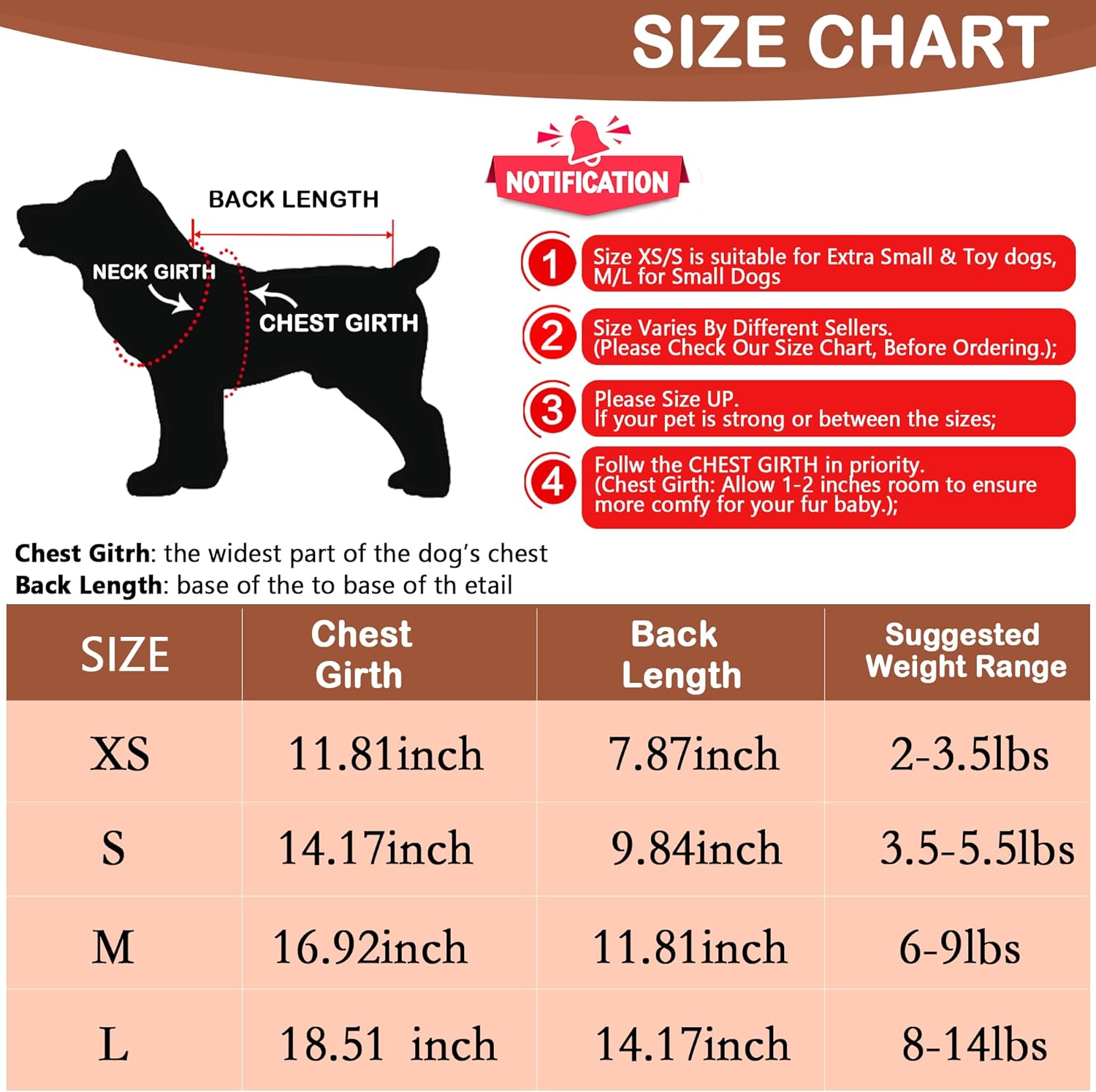 - 【Size】Size Large, Back:14.17",Chest:18.51". Recommended for pet dog 8 to 14 pounds. eg Shih Tzu, Pug, Bichon, Fox Terrier, Jack Russel,King Charles,Miniature Poodle, Miniature Schnauzer,Boston Terrier, Havanese, Beagle, West Highland White Terrier, Papillon.