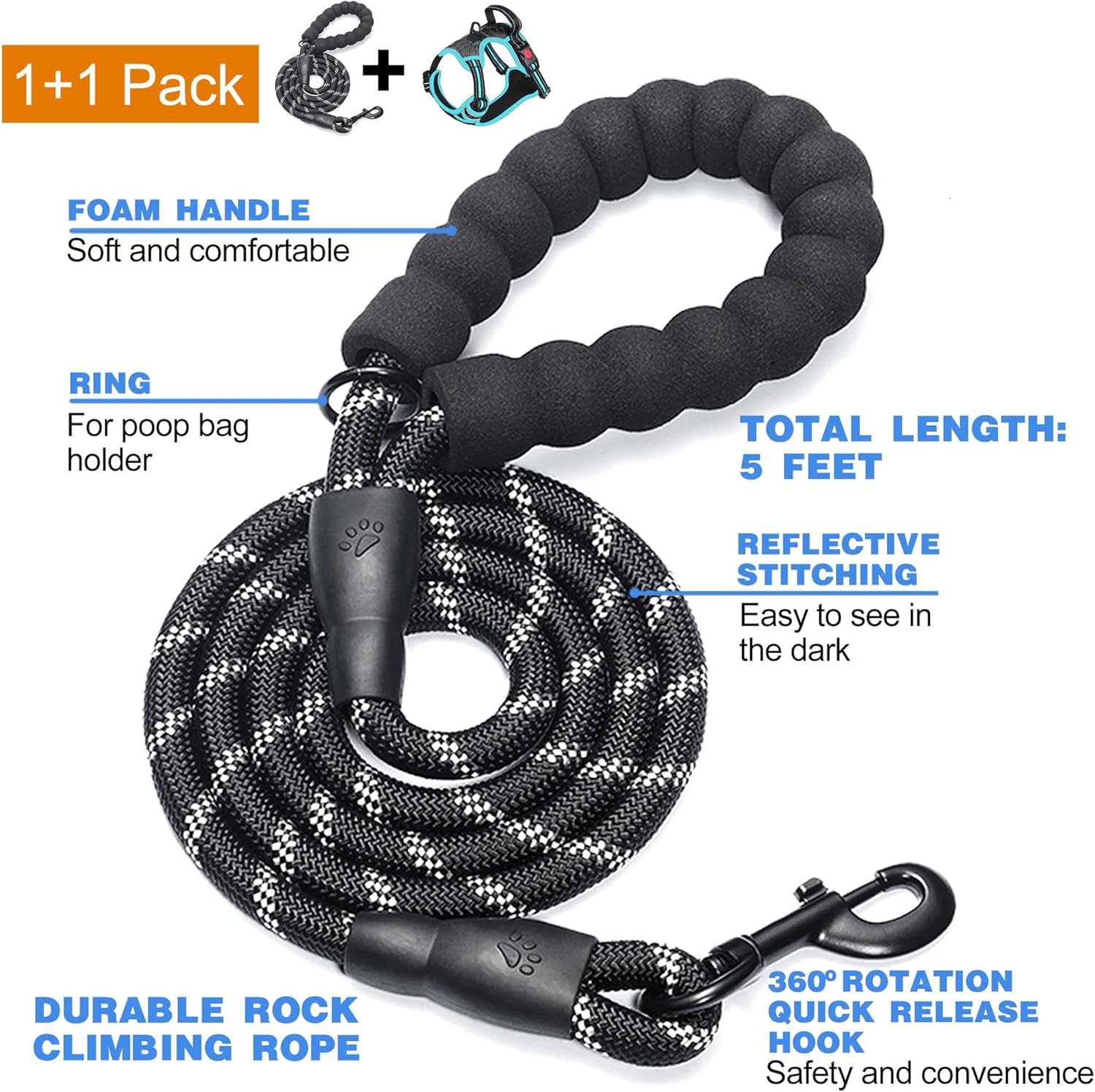 No Pull Dog Harness Adjustable Reflective Oxford Easy Control Medium Large Dog Harness with A Free Heavy Duty 5ft Dog Leash