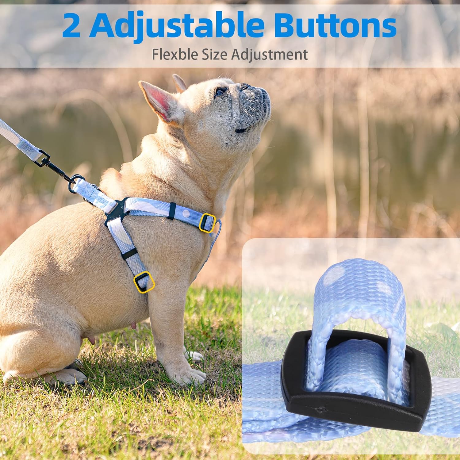 - [Matching Leash] - Each harness is equipped with a leash, it's 4.9ft in length, and it has the same pattern as the harness. If you don't have a leash before, then you don't need to purchase separately.