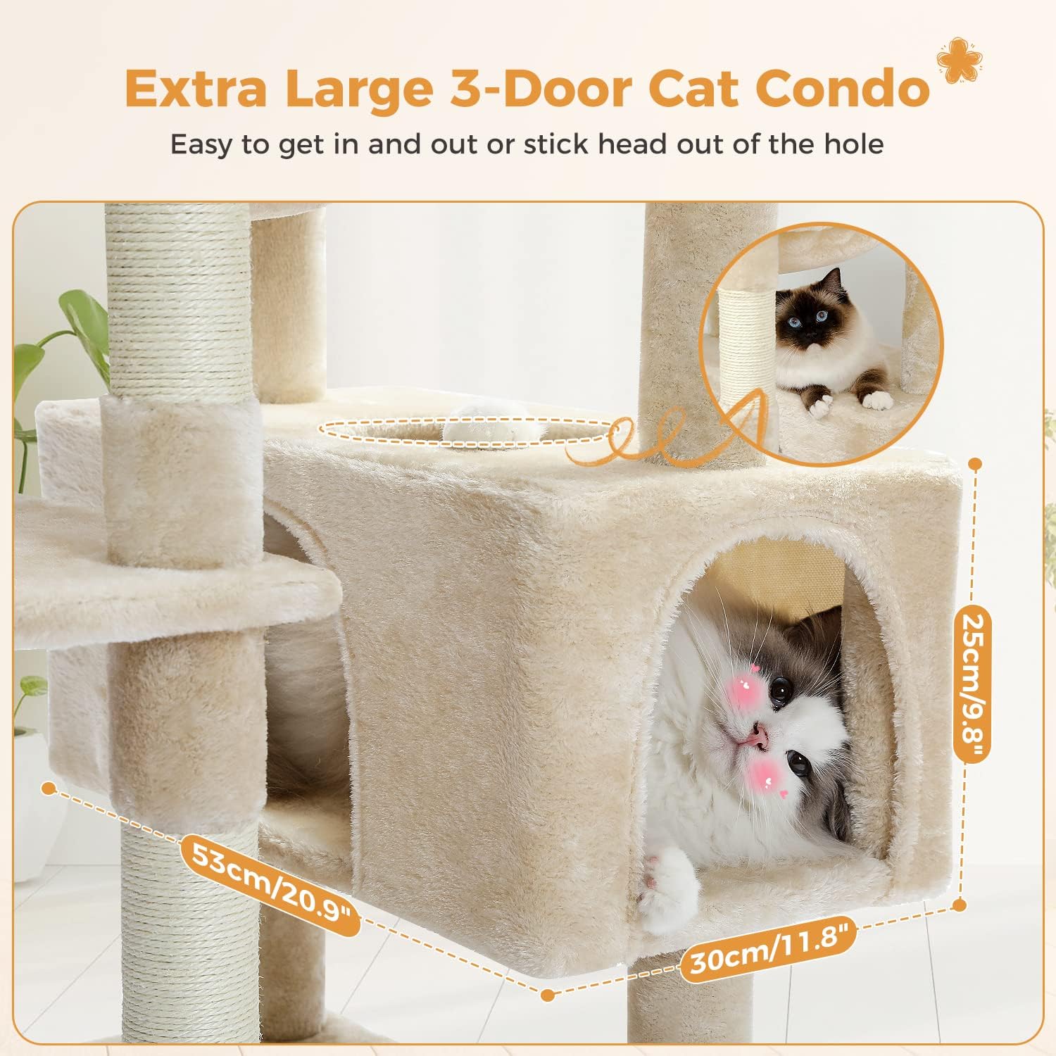 - Designed for Large Cats: Featuring a super large hammock, it is stable&wide enough to support your 2 fatty furry friends having a catnip.And the extra spacious cat condo measuring 21"X12"X10" perfectly satisfy the needs of sleeping and playing. Fully stretching their bodies, Lounging for a nap, playing hide-and-seek, chubby cats(like Marine Coon and Ragdoll between 15-20 lbs) could do whatever they want in this condo paradise.
