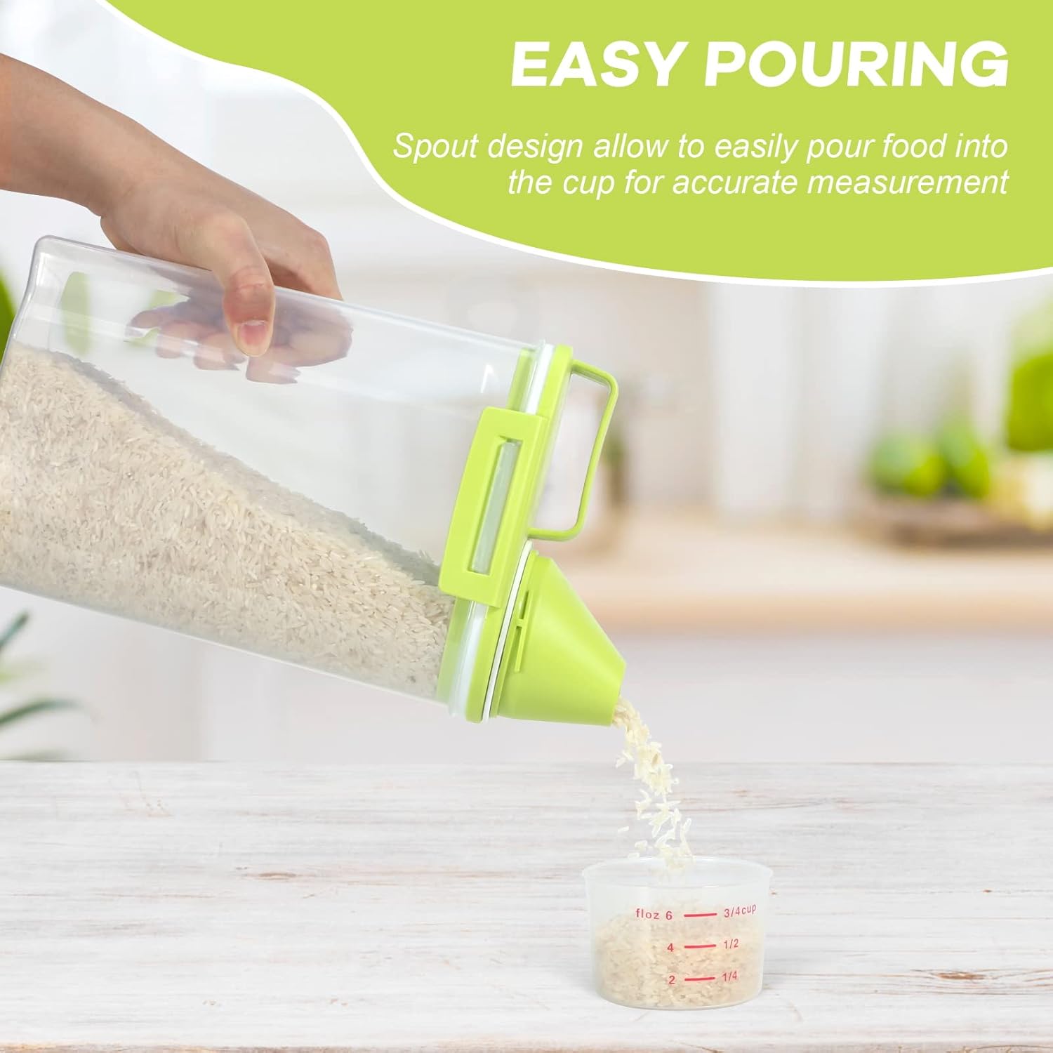 - Easy Pouring: The rice storage container features a pouring spout makes it a breeze to dispense your ingredients. Its ergonomic design offers a comfortable grip for easy, single-handed pouring