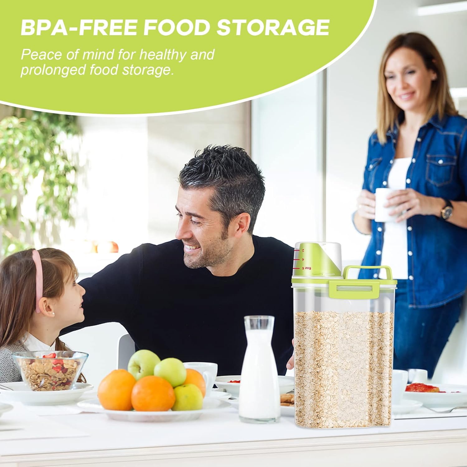 - Clear Visibility: Cereal storage container with vivid lime green color will sparkle your kitchen space. The see-through design offers a clear view of the contents and remind you the time to replenish