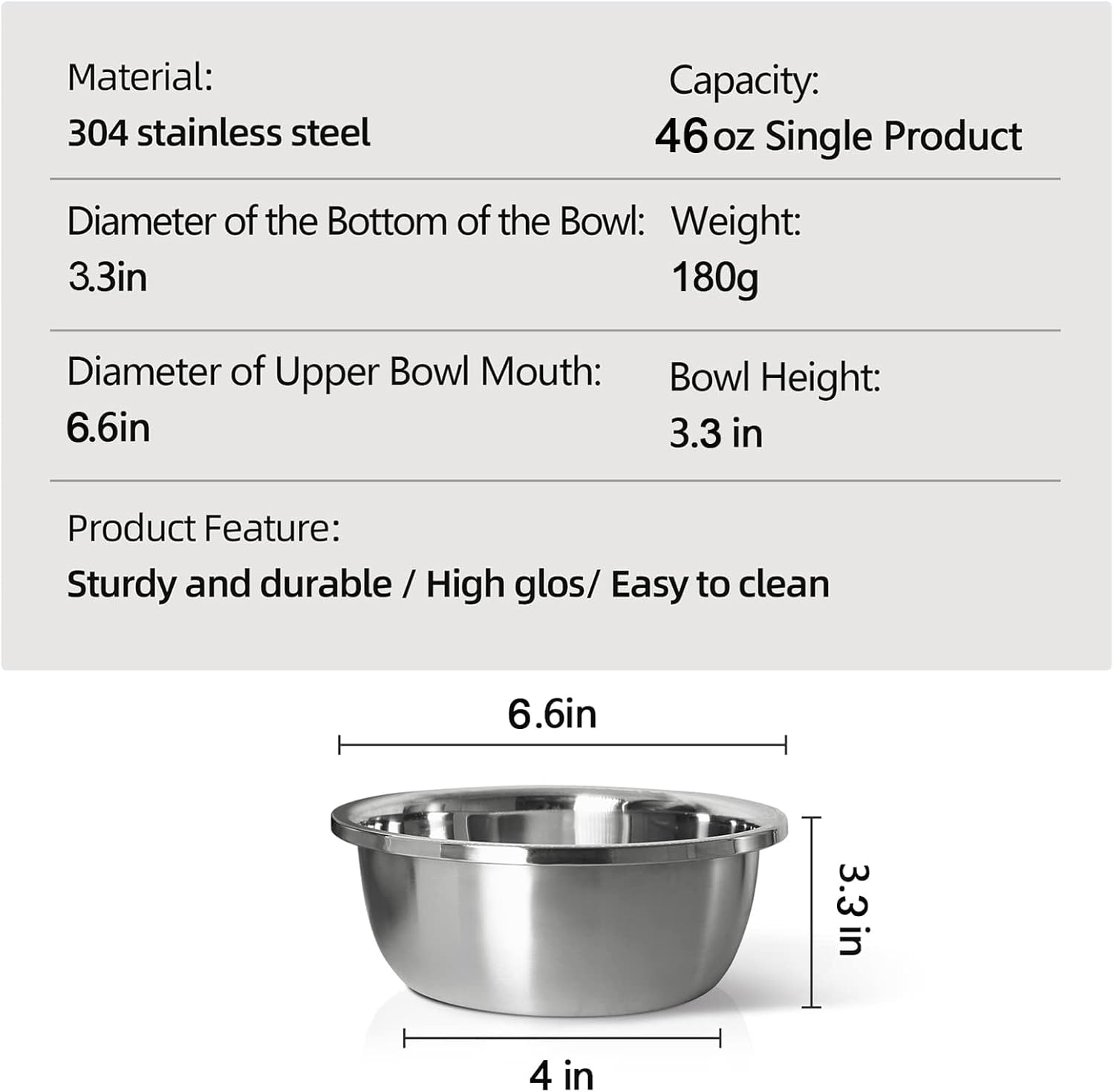 - STABLE AND SMOOTH: The pet food bowl is mirror polished for an elegant look and smooth touch. The flat edges won't hurt your dog's tongue, rust-resistant and easy to clean.