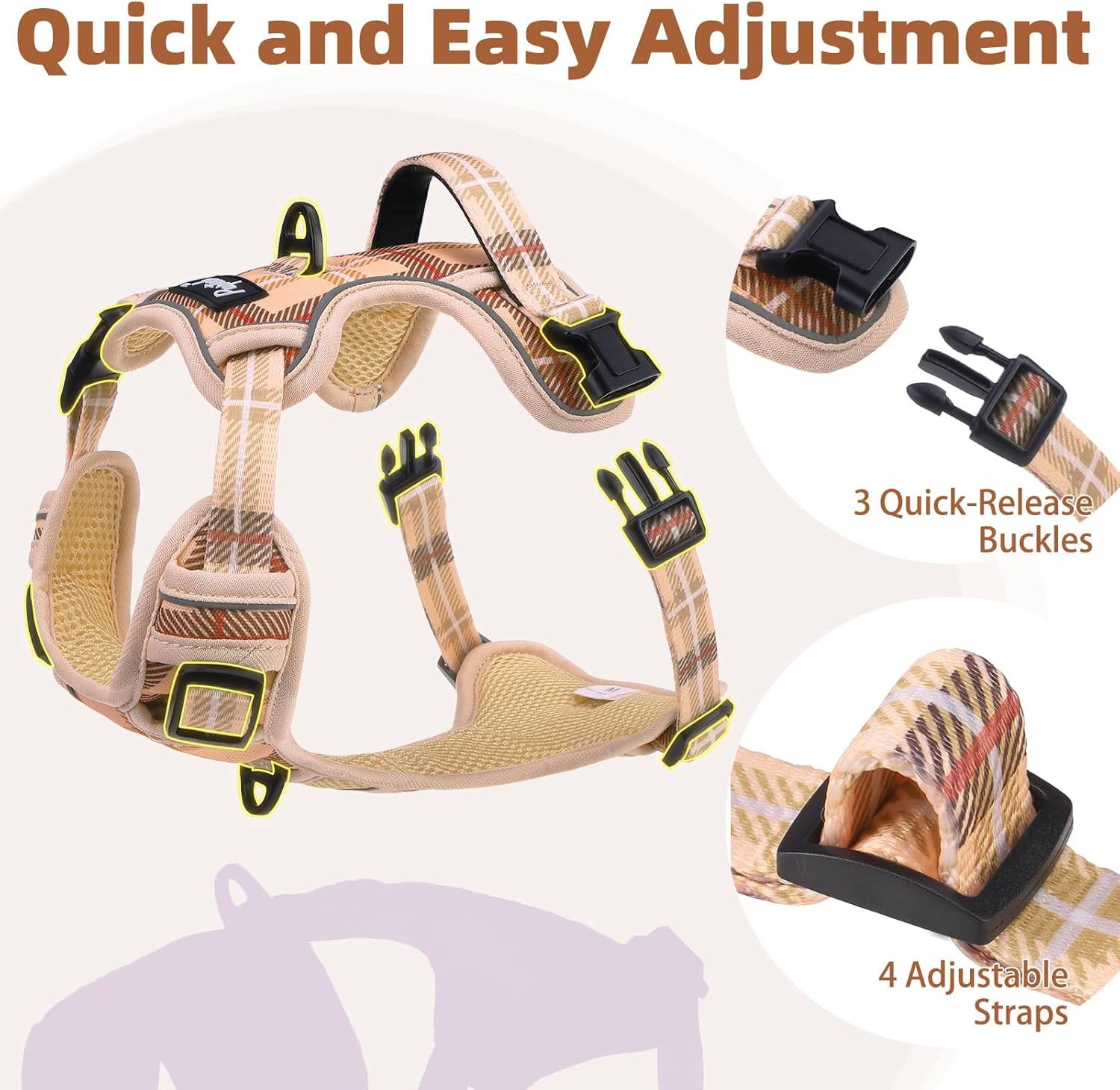 PUPTECK No Pull Dog Harness Medium Sized, Adjustable Reflective Dog Harness with Handle Easy Control, Comfortable Soft Padded Pet Vest Harness for Medium Dogs, Plaid Beige M