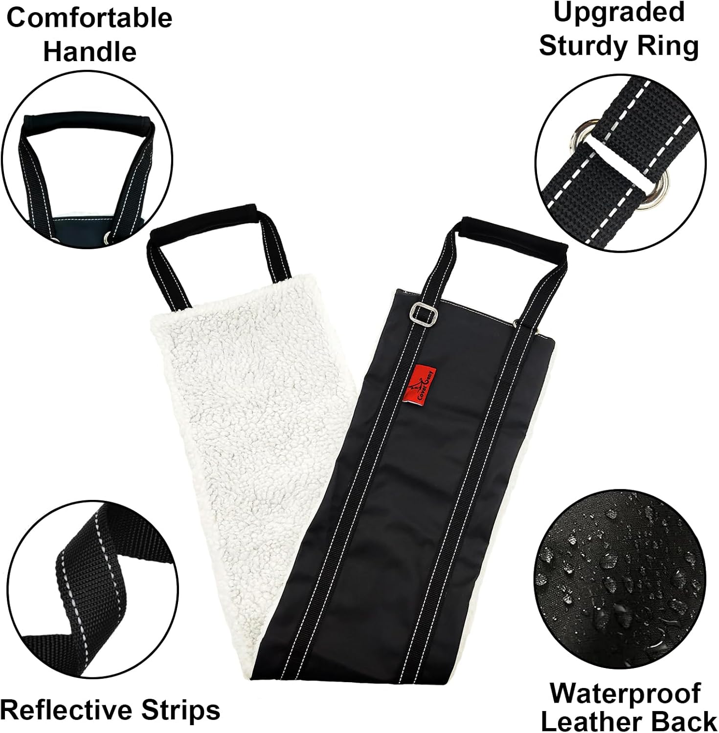 - Easy to use and store: place the harness under the dog's belly with the fleece lining touching their belly, and adjust the webbing as needed. It can be easily folded for portability when not in use.