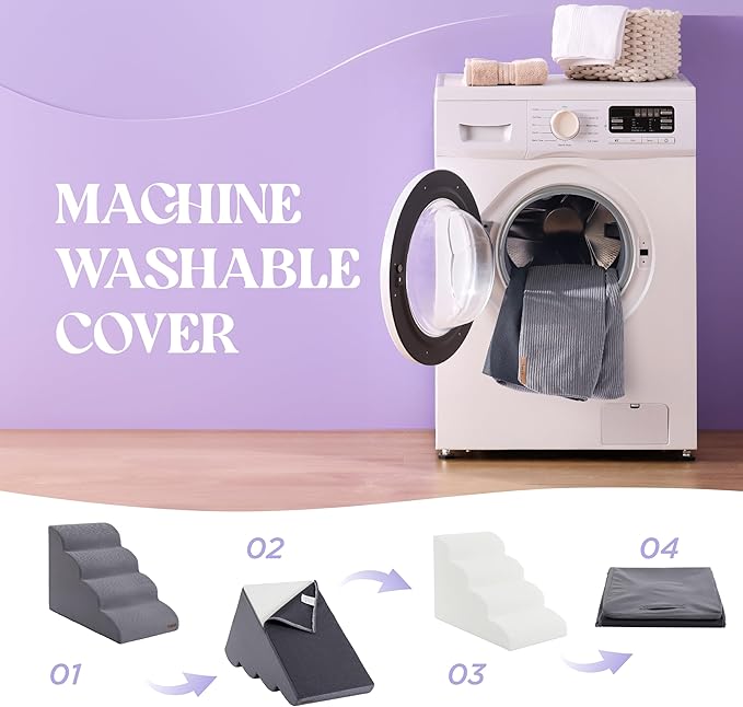 - Easy to Clean: Keeping these pet stairs for dogs fresh and tidy is a breeze. Simply remove the foam core and machine wash the outer cover separately in cold water on a delicate cycle. Please note, the foam core should not be machine washed or dried to ensure long-lasting use and comfort for your pets.