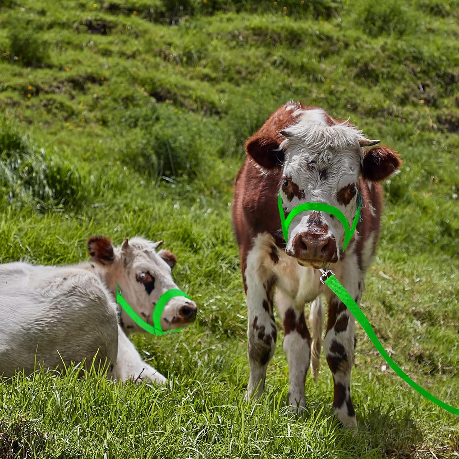 Hillban Cow Halter Cattle Halters Adjustable Calf Halter with Leading Rope for Miniature Horse Donkey Goat Foal Nylon Cattle Training Supplies